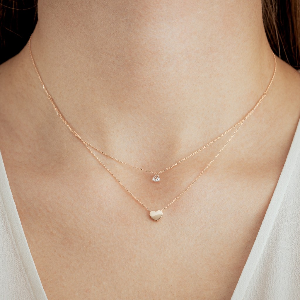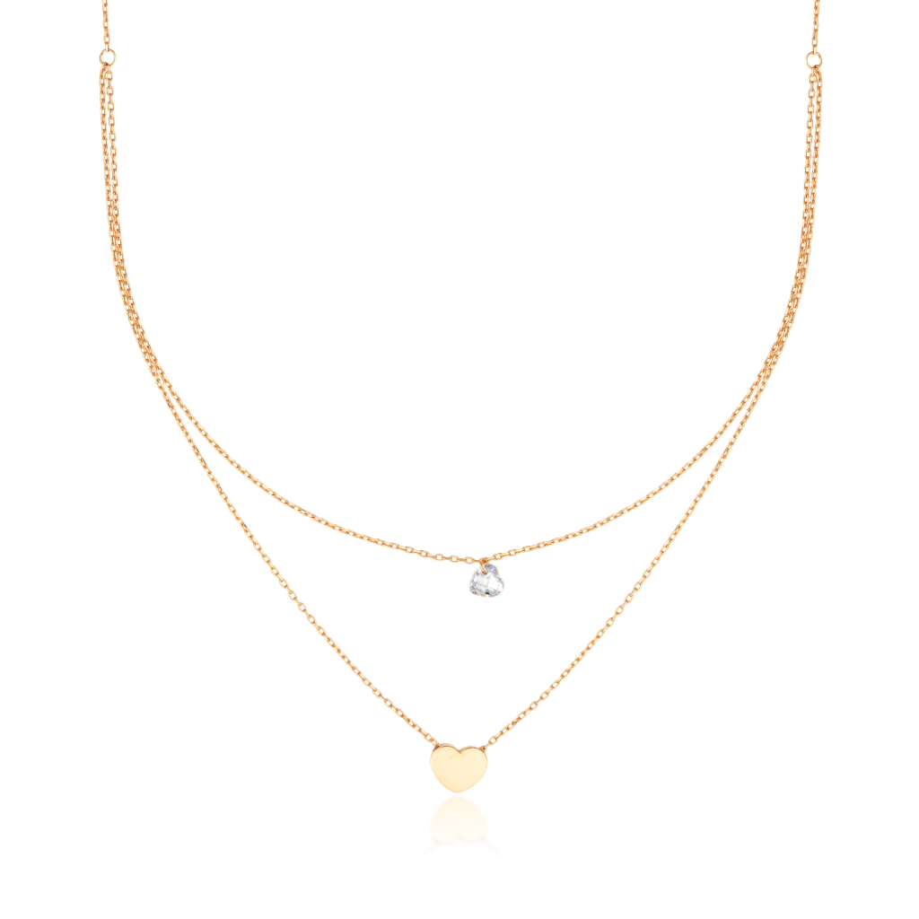 Auksinė dviguba grandinėlė su cirkonio pakabuku "Širdelė" - Auksinės grandinėlės su pakabukais - Goldinga