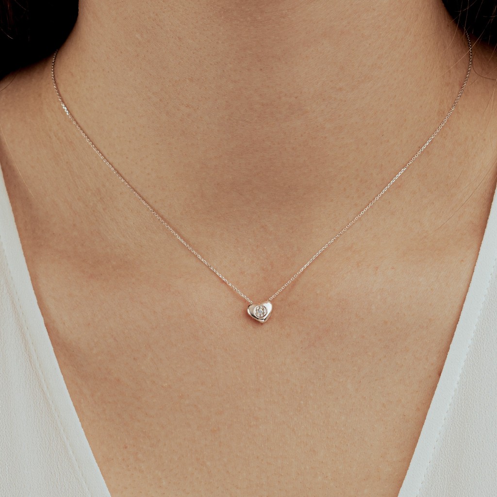 Balto aukso Grandinėlė Su Deimantiniu Pakabuku "Širdelė"
