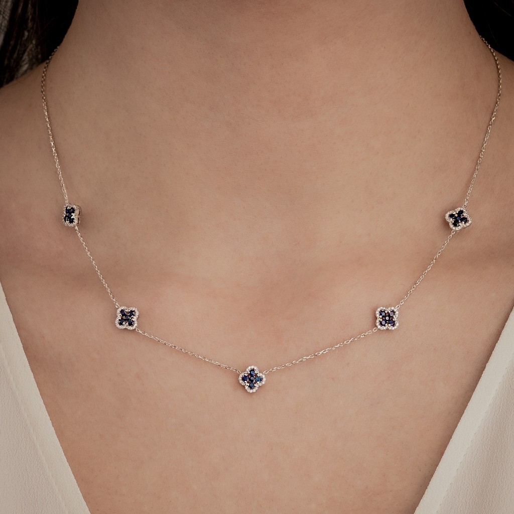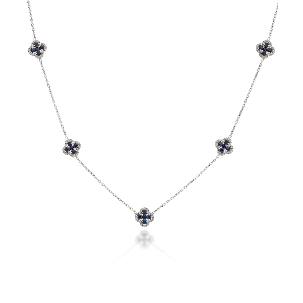 Balto aukso Grandinėlė Su safyrais ir deimantais