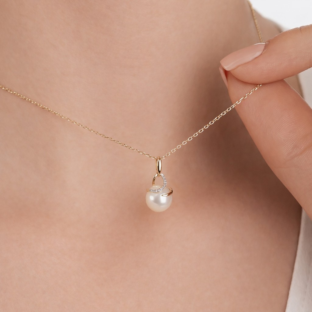 Balto aukso Grandinėlė Su Deimantiniu Pakabuku "Širdelė"