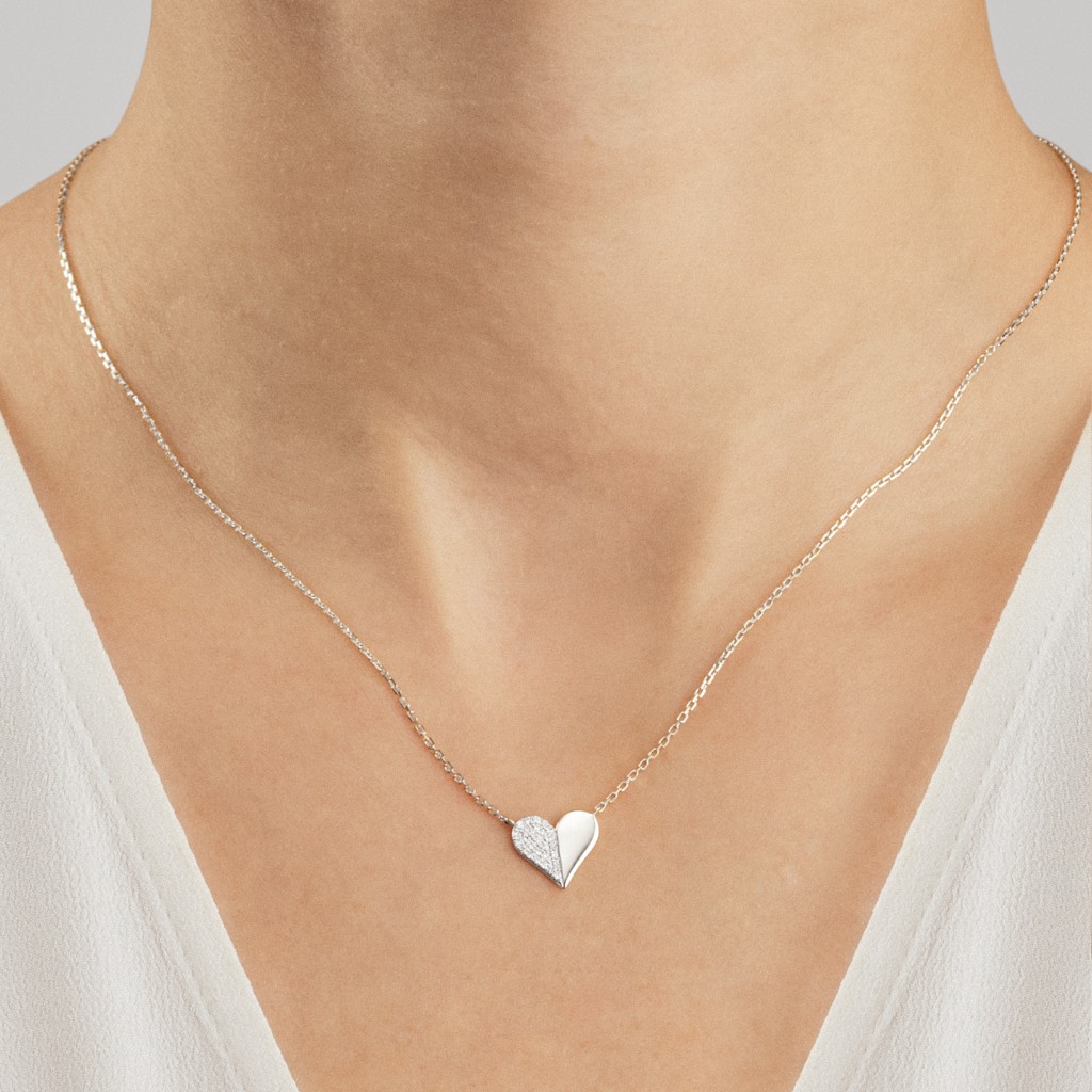 Balto aukso  Grandinėlė Su deimantiniu Pakabuku "Širdelė"
