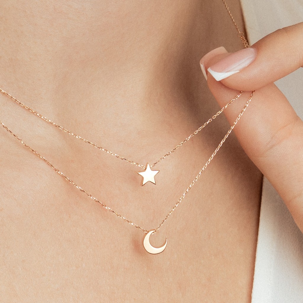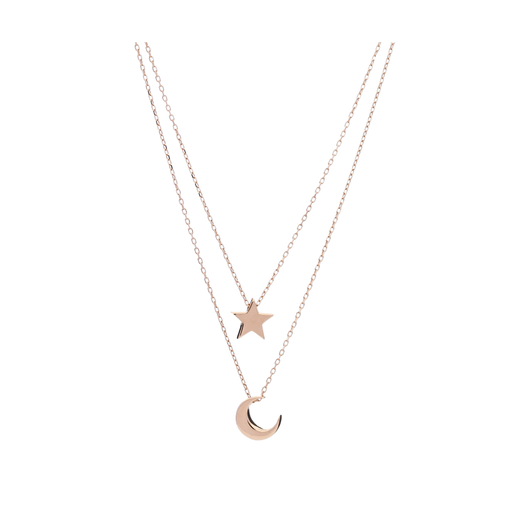 Dviguba auksinė grandinėlė su pakabukais "Žvaigždė ir mėnulis"