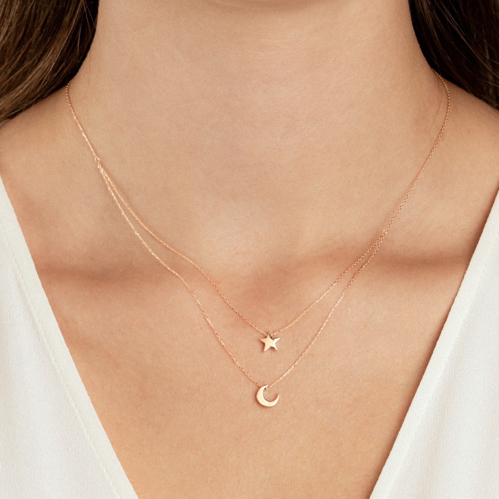 Dviguba auksinė grandinėlė su pakabukais "Žvaigždė ir mėnulis"  - G...