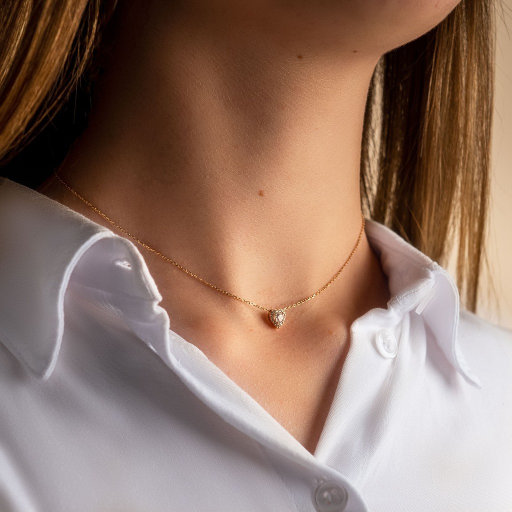 Auksinė grandinėlė su cirkonio pakabuku "Širdelė" - Auksinės grandinėlės su pakabukais - Goldinga