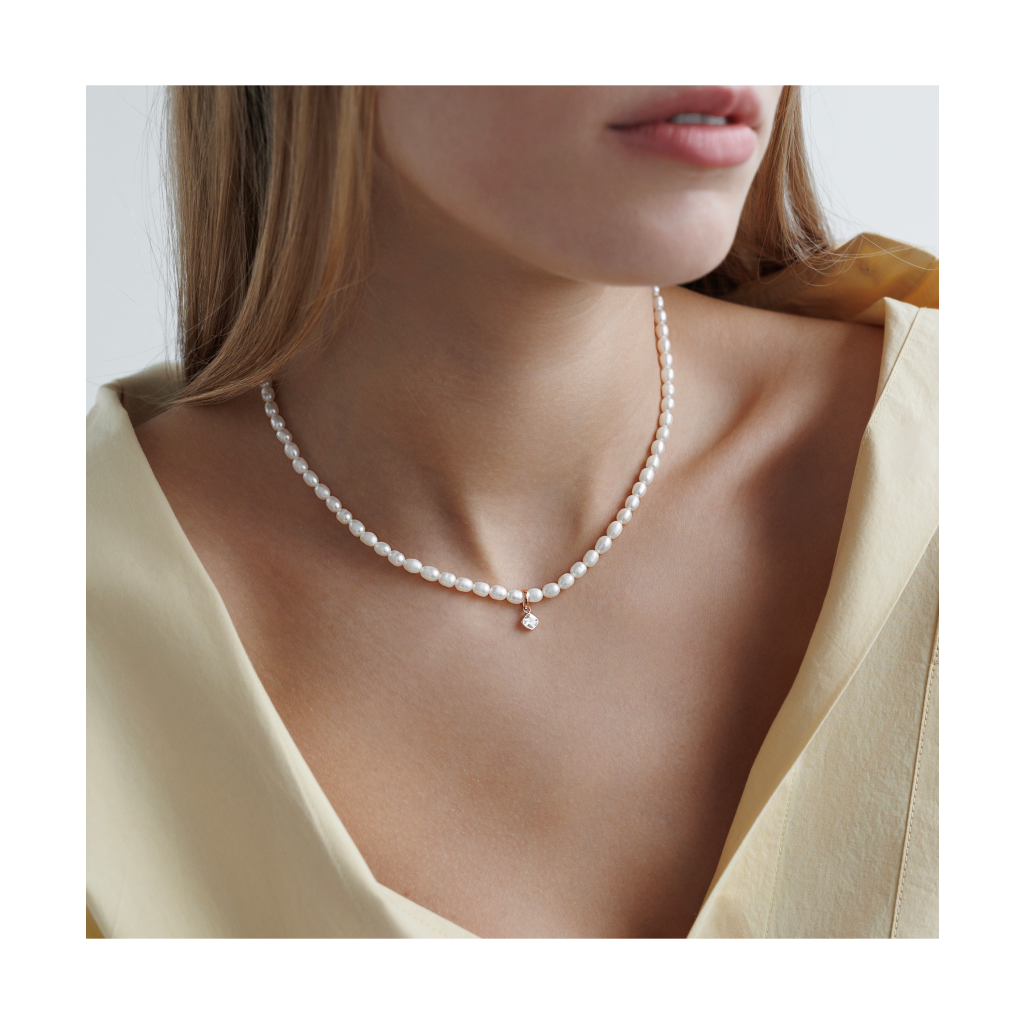 Perlų vėrinys Su paauksuotu Sidabru ir cirkonio pakabuku