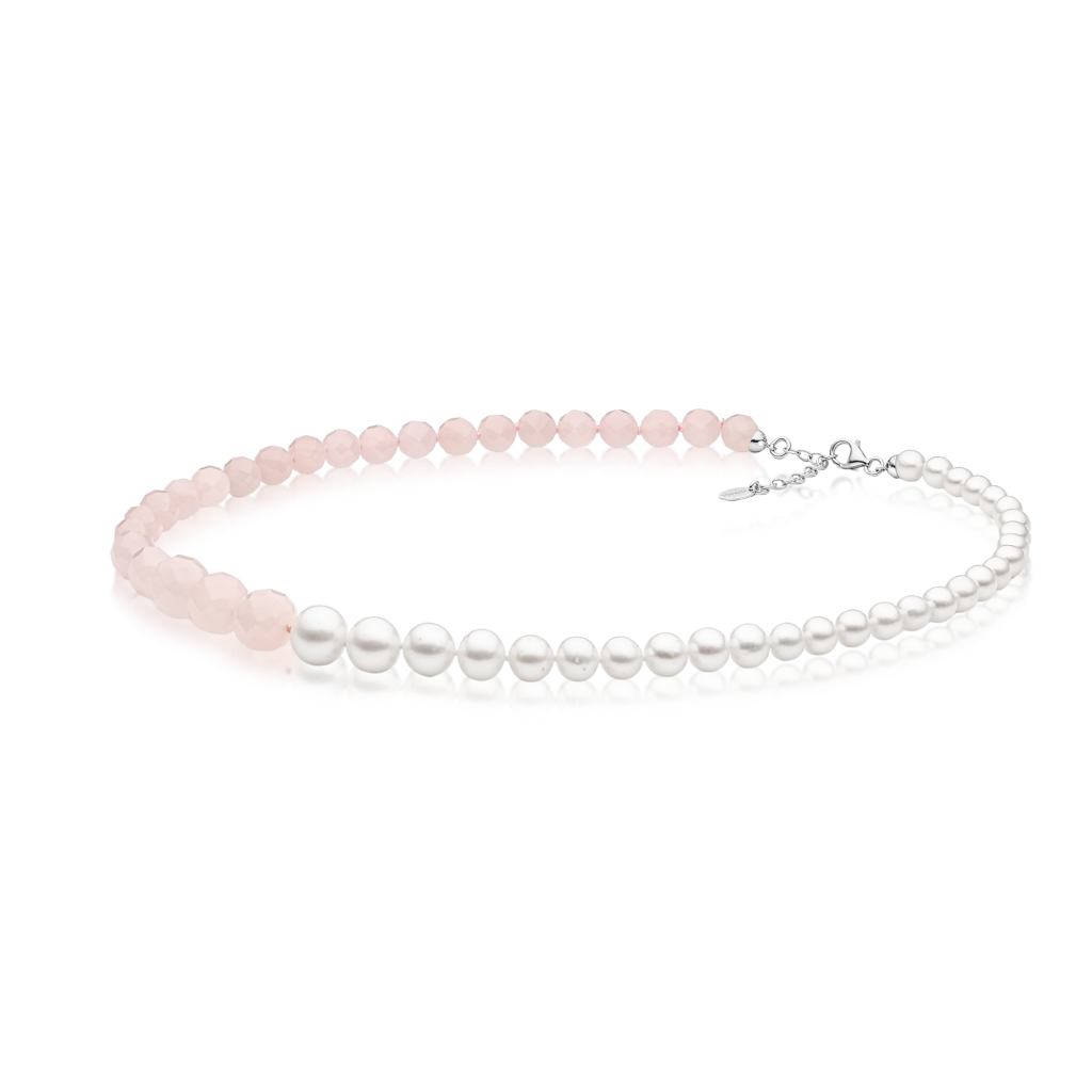 Perlų vėrinys su rožiniais kvarcais - Perlų vėriniai - Goldinga