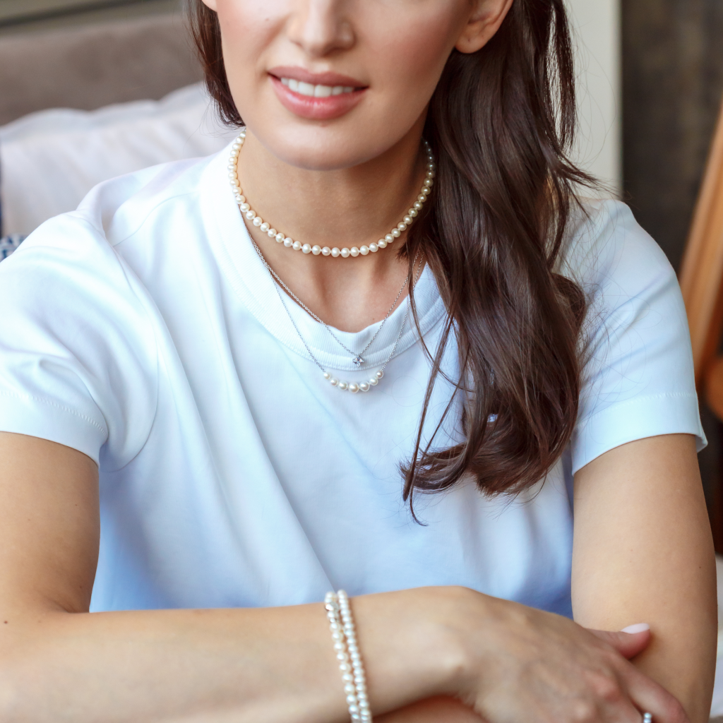 Sidabrinė grandinėle su Perlais ir cirkoniu - Perlų vėriniai - Goldinga