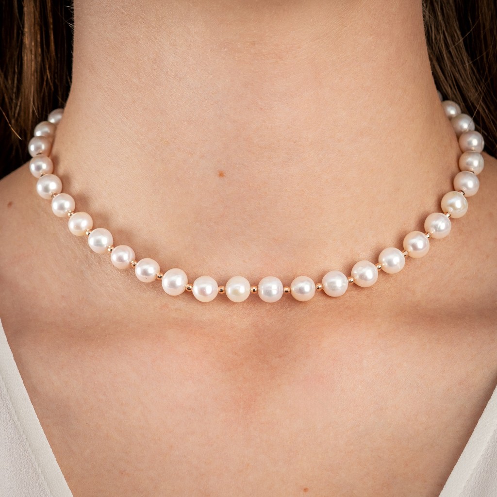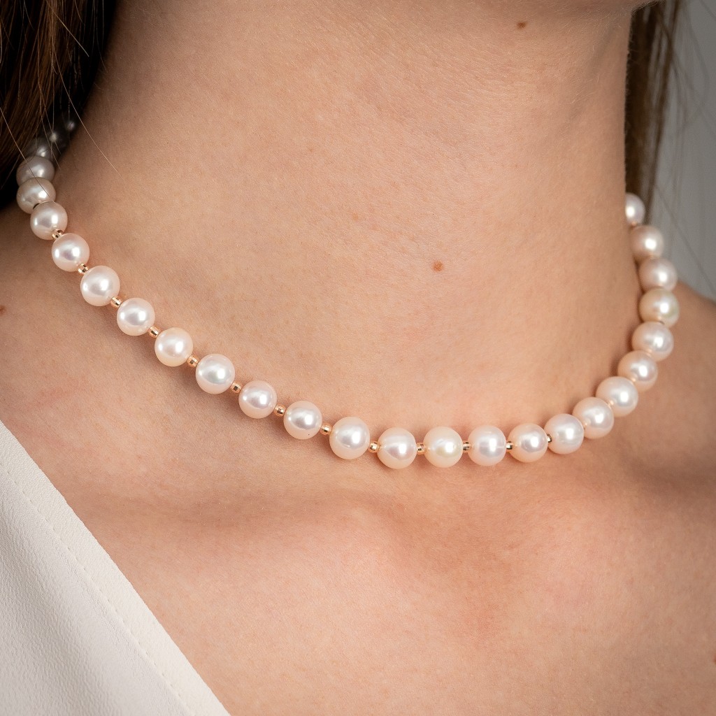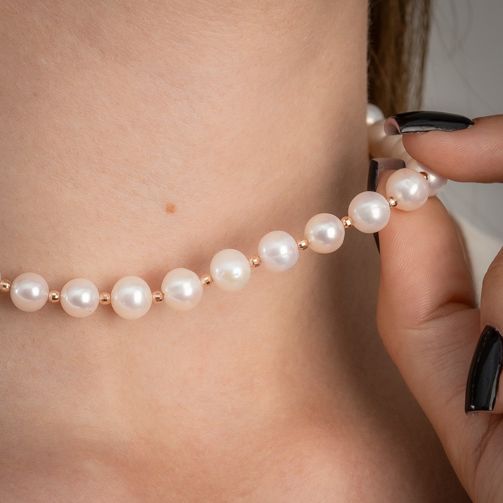 Paauksuota sidabrinė grandinėlė su perlu ir cirkoniais