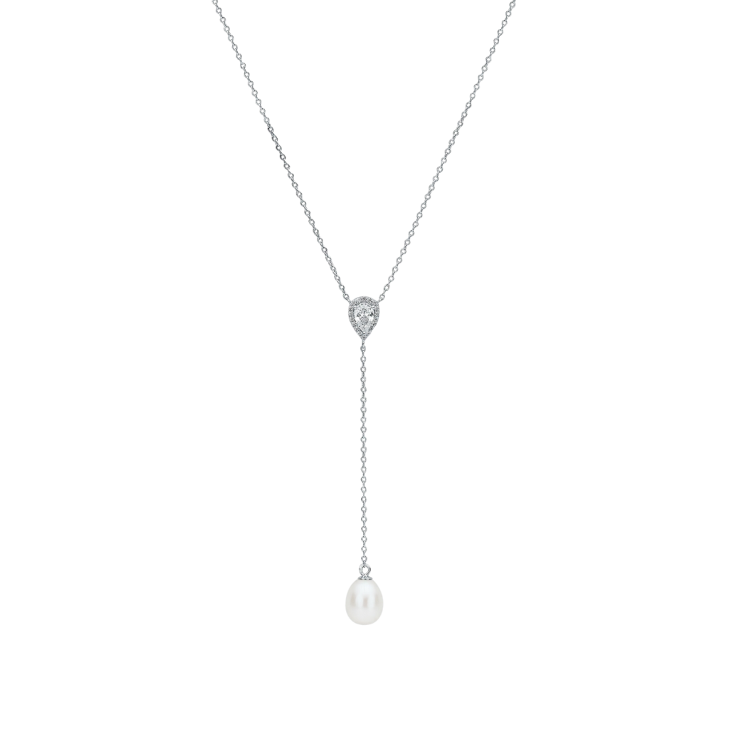 Sidabrinė Grandinėlė Su Perlo Pakabuku Ir Cirkoniais - Sidabrinės grandinėlės su pakabukais - Goldinga