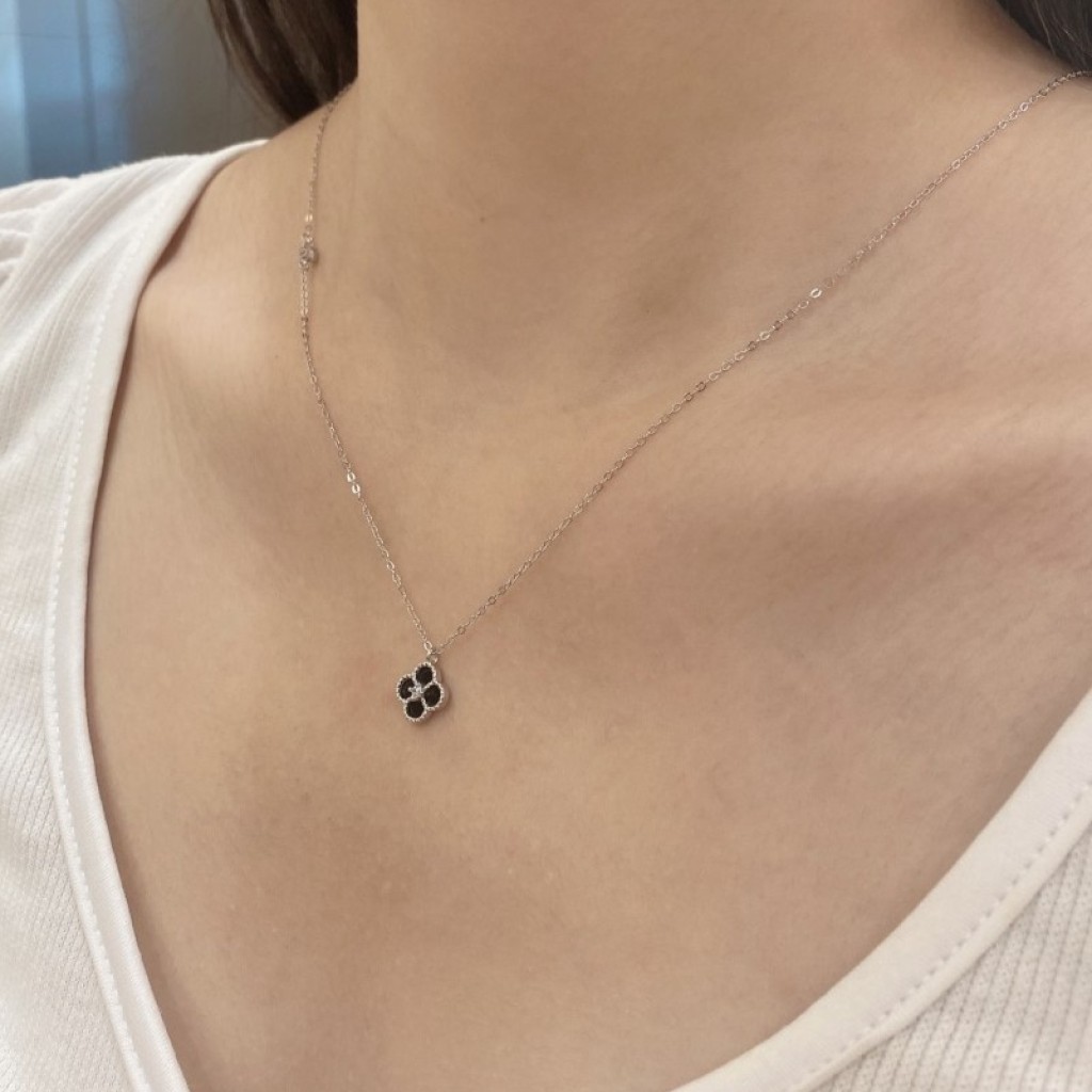 Sidabrinė grandinėlė su emalės ir cirkonio pakabuku