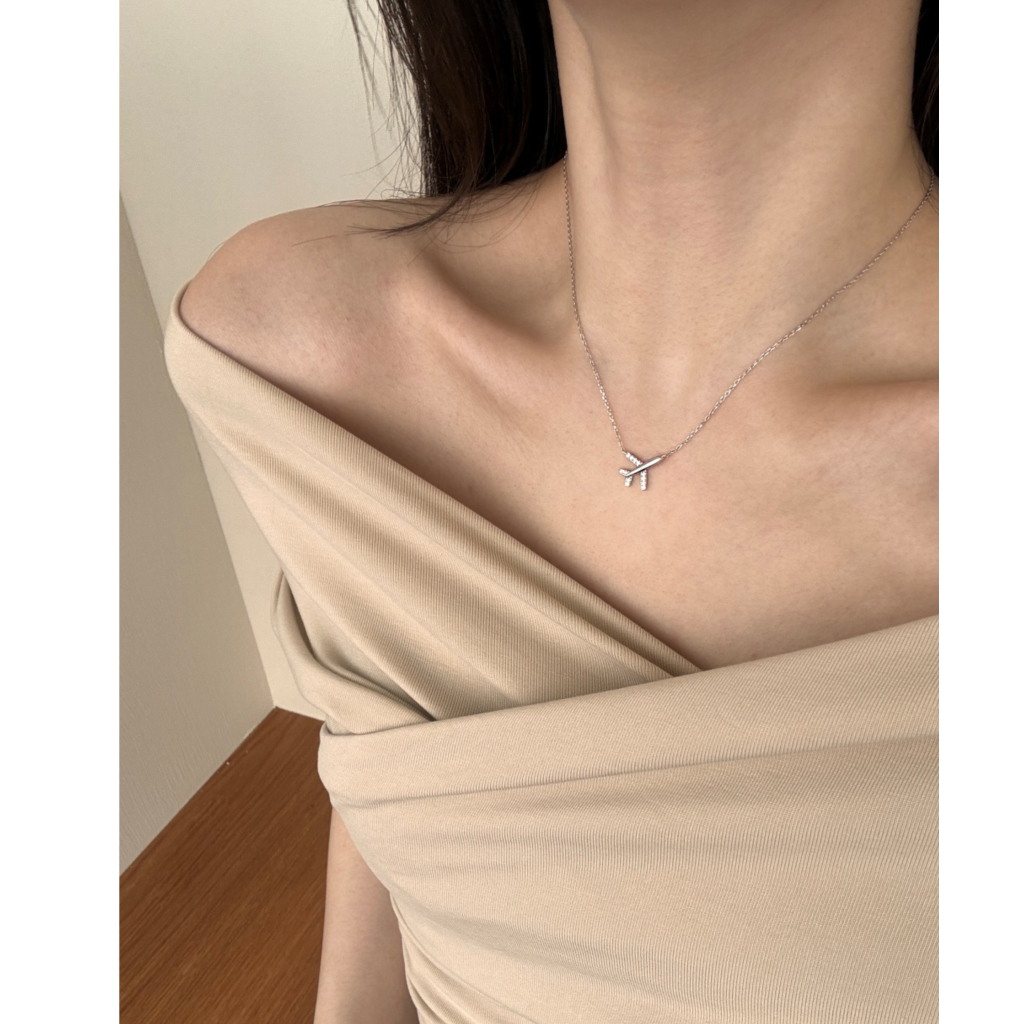 Sidabrinė grandinėlė su cirkonio pakabuku "Lėktuvas"
