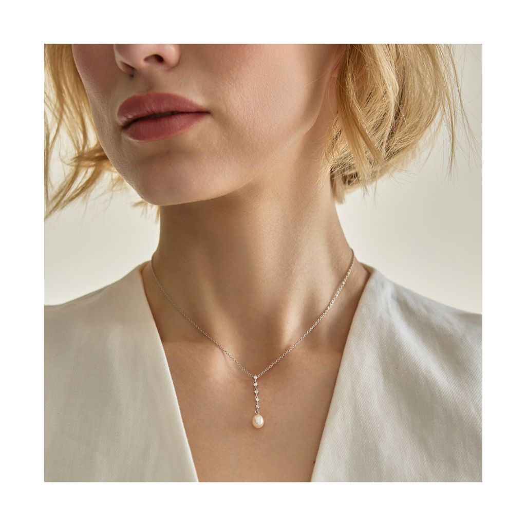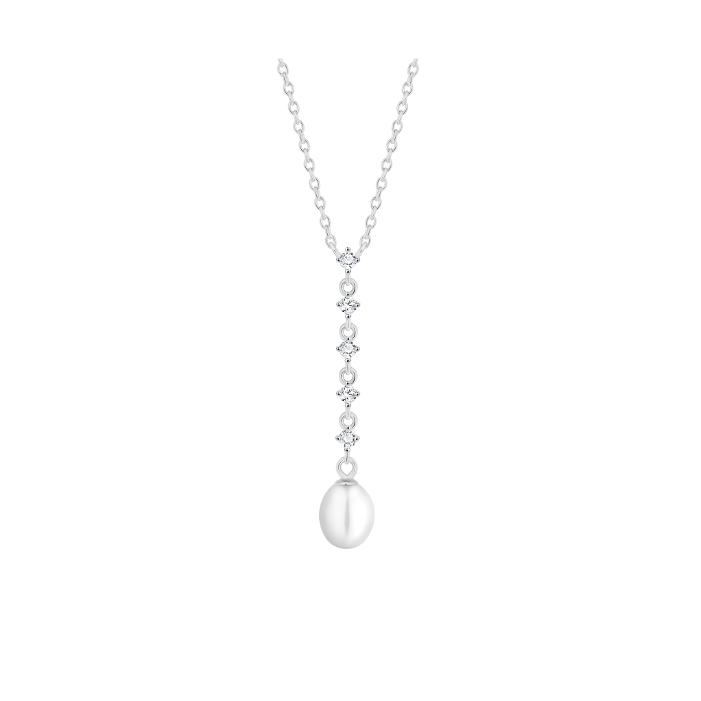 Sidabrinė Grandinėlė Su Perlo Pakabuku Ir Cirkoniais