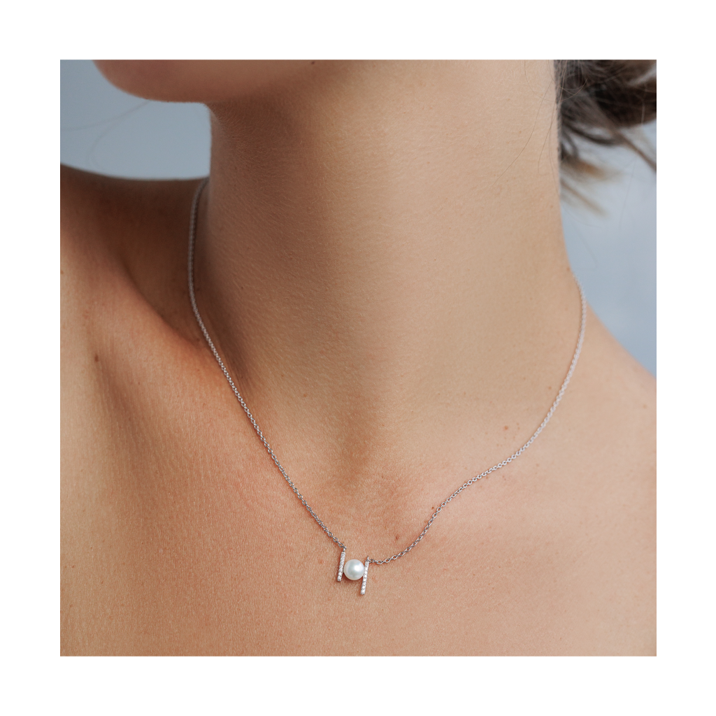 Sidabrinė Grandinėlė Su Perlo Pakabuku Ir Cirkoniais