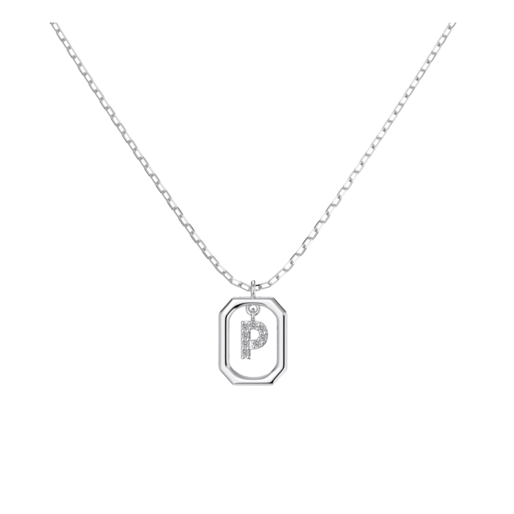 Sidabrinė grandinėlė su cirkonio pakabuku "Raidė P"