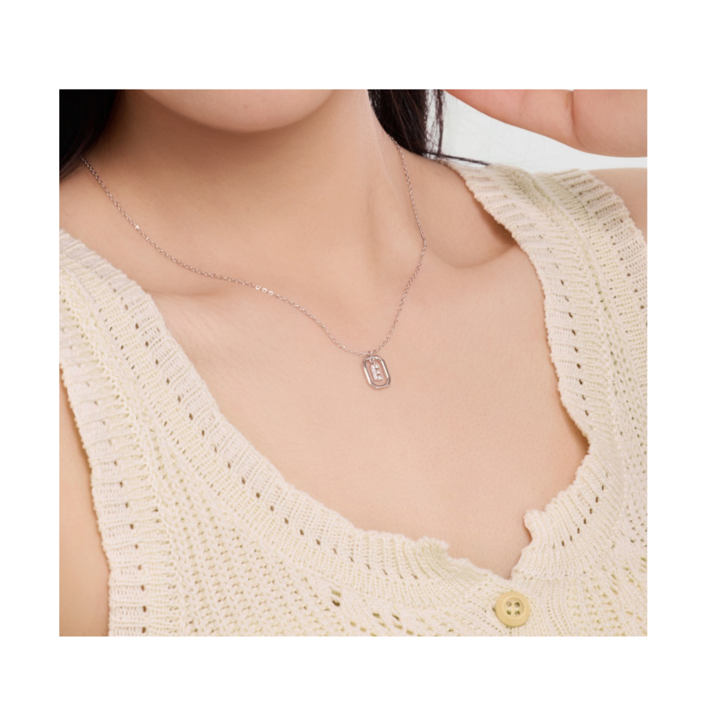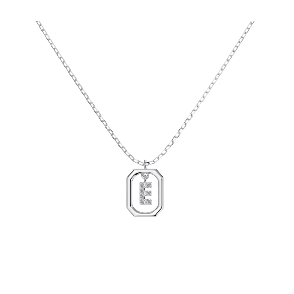 Sidabrinė grandinėlė su cirkonio pakabuku "Raidė E"