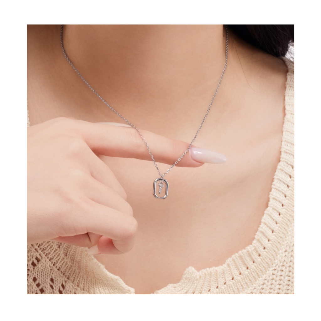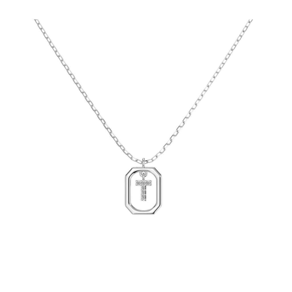Sidabrinė grandinėlė su cirkonio pakabuku "Raidė T"