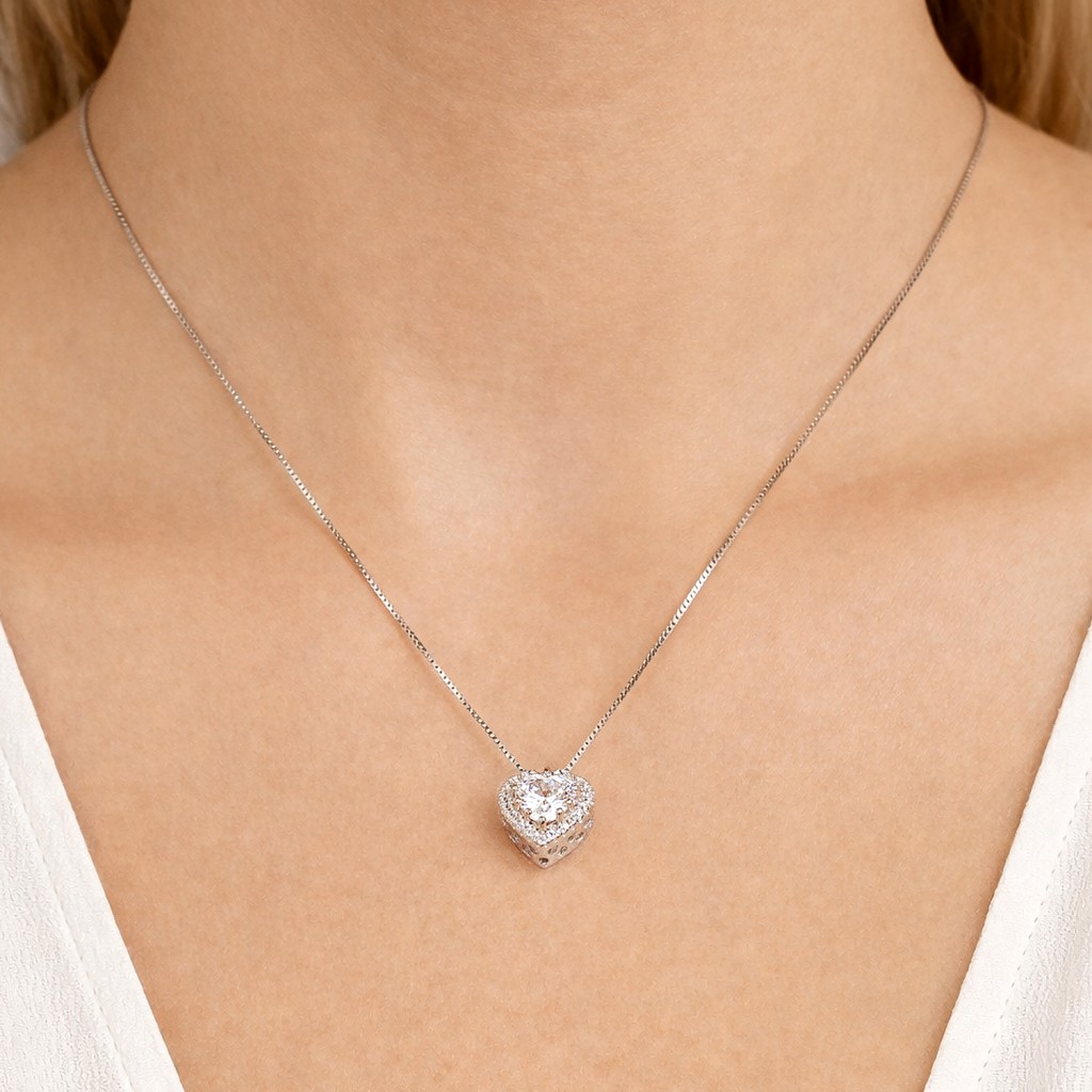 Sidabrinė grandinėlė su cirkonio pakabuku "Širdelė"