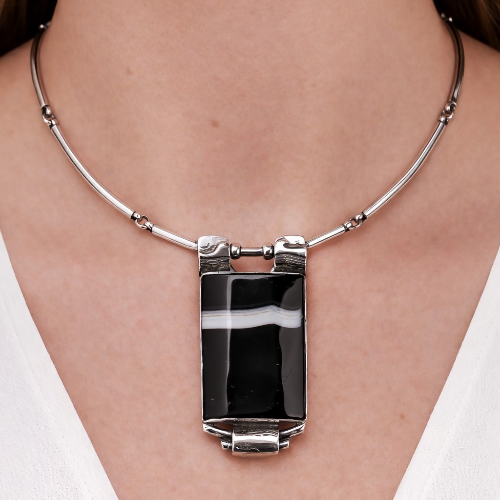 Sidabrinis koljė su agato pakabuku