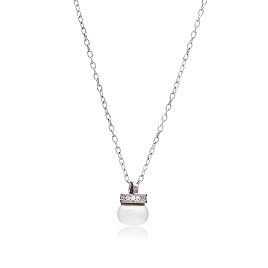 Sidabrinė grandinėlė su perlo pakabuku ir cirkoniais