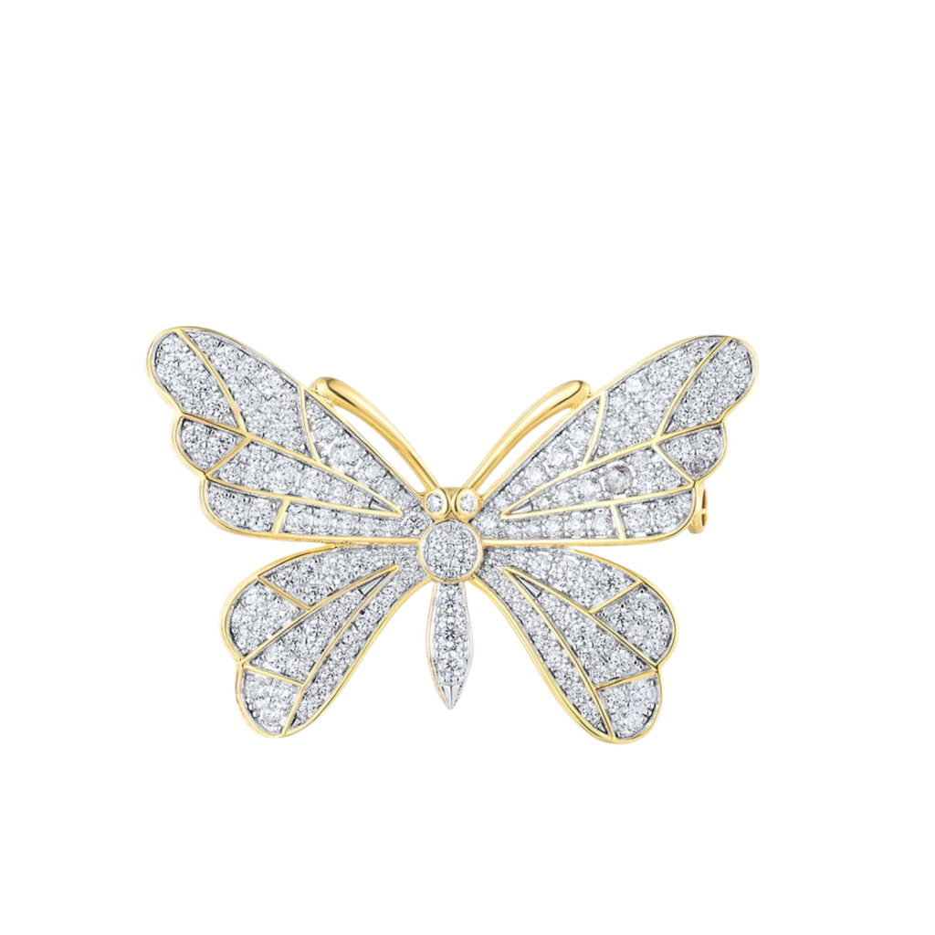 Paauksuota Sidabrinė sagė su cirkoniais "Drugelis"