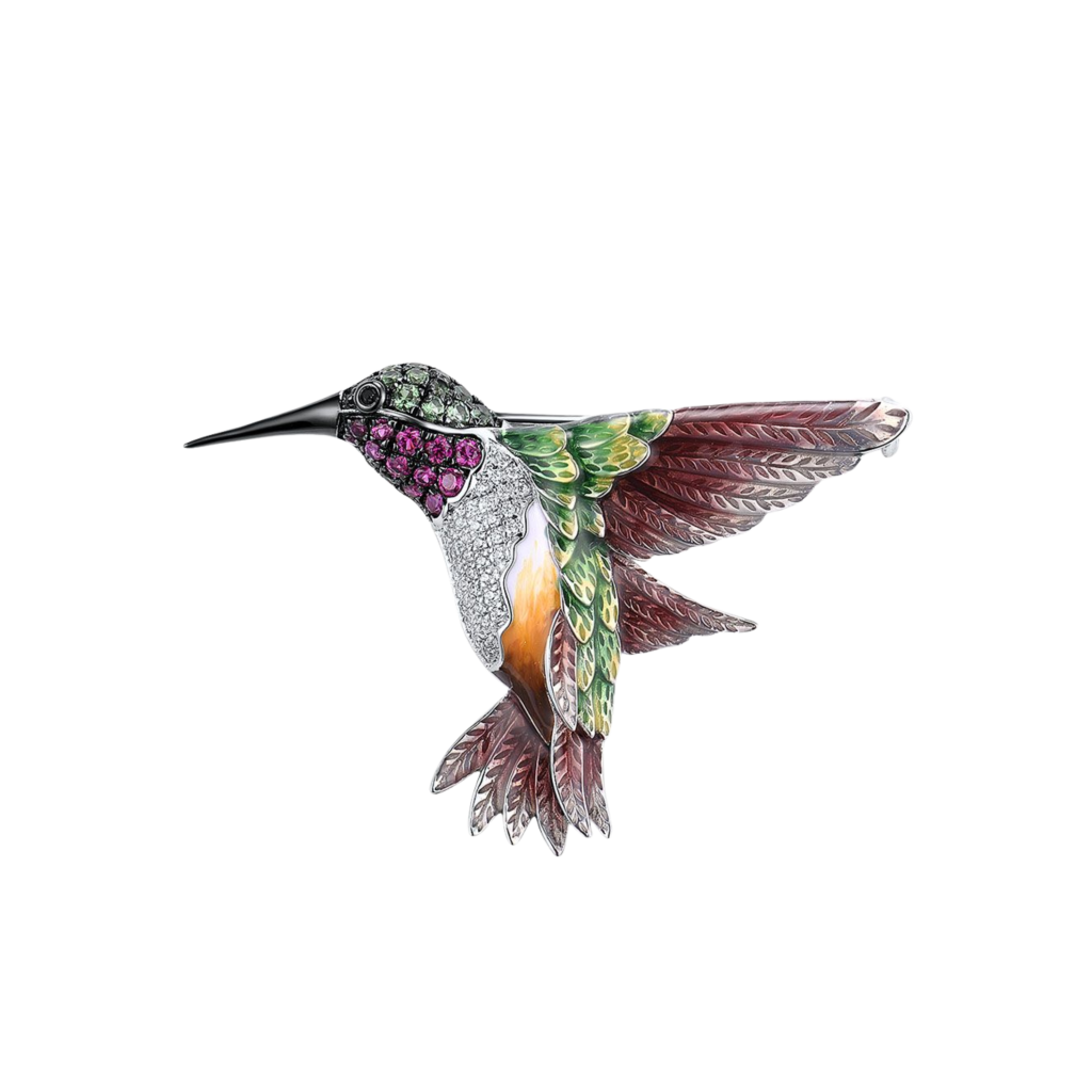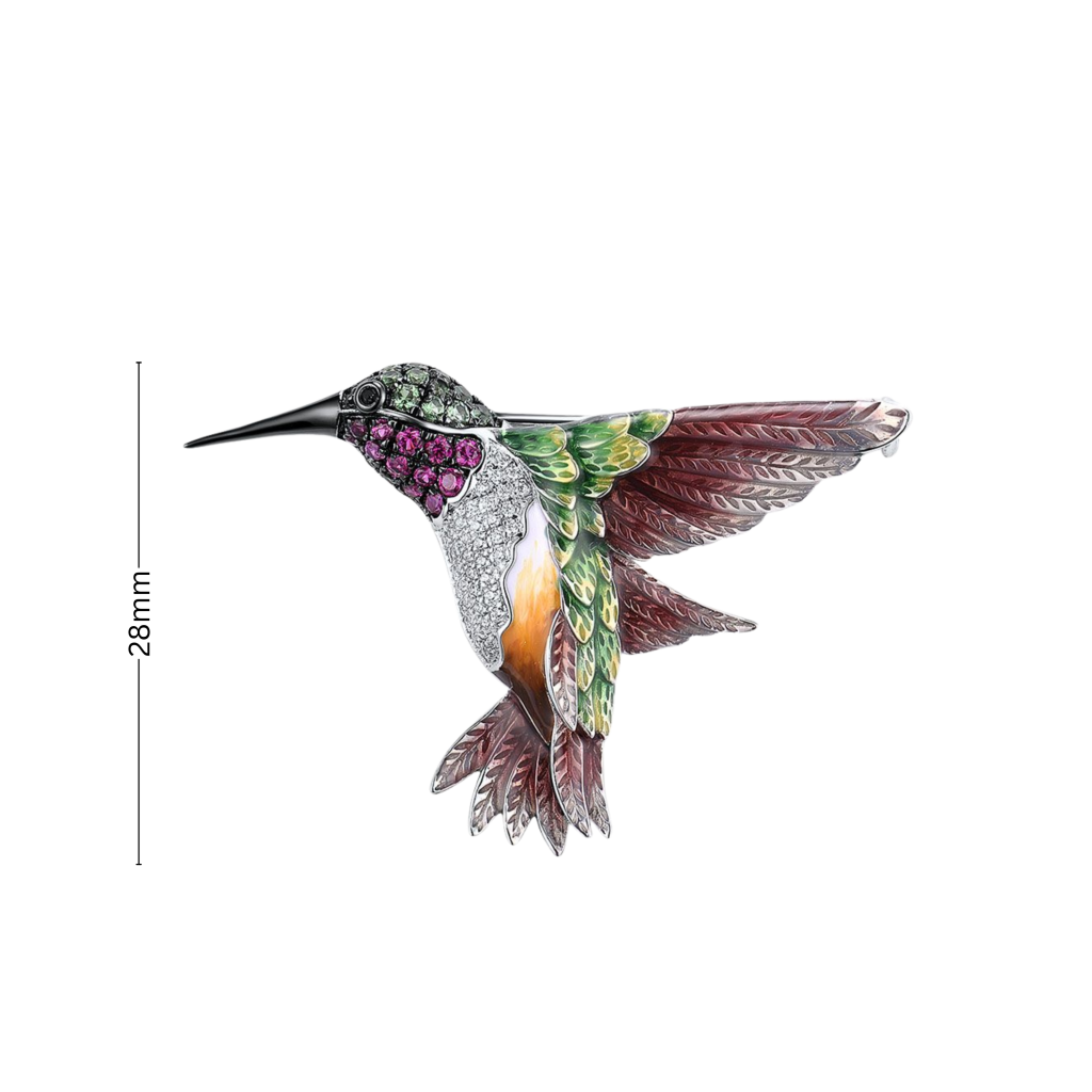 Paauksuota Sidabrinė sagė su nano rubinais, emale ir cirkoniais