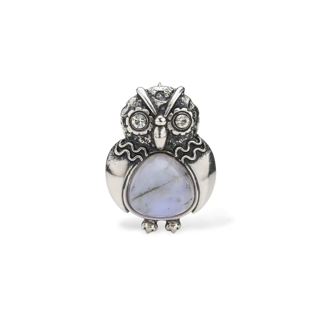 Sidabrinė sagė su agatu ir cirkoniais "Pelėda"