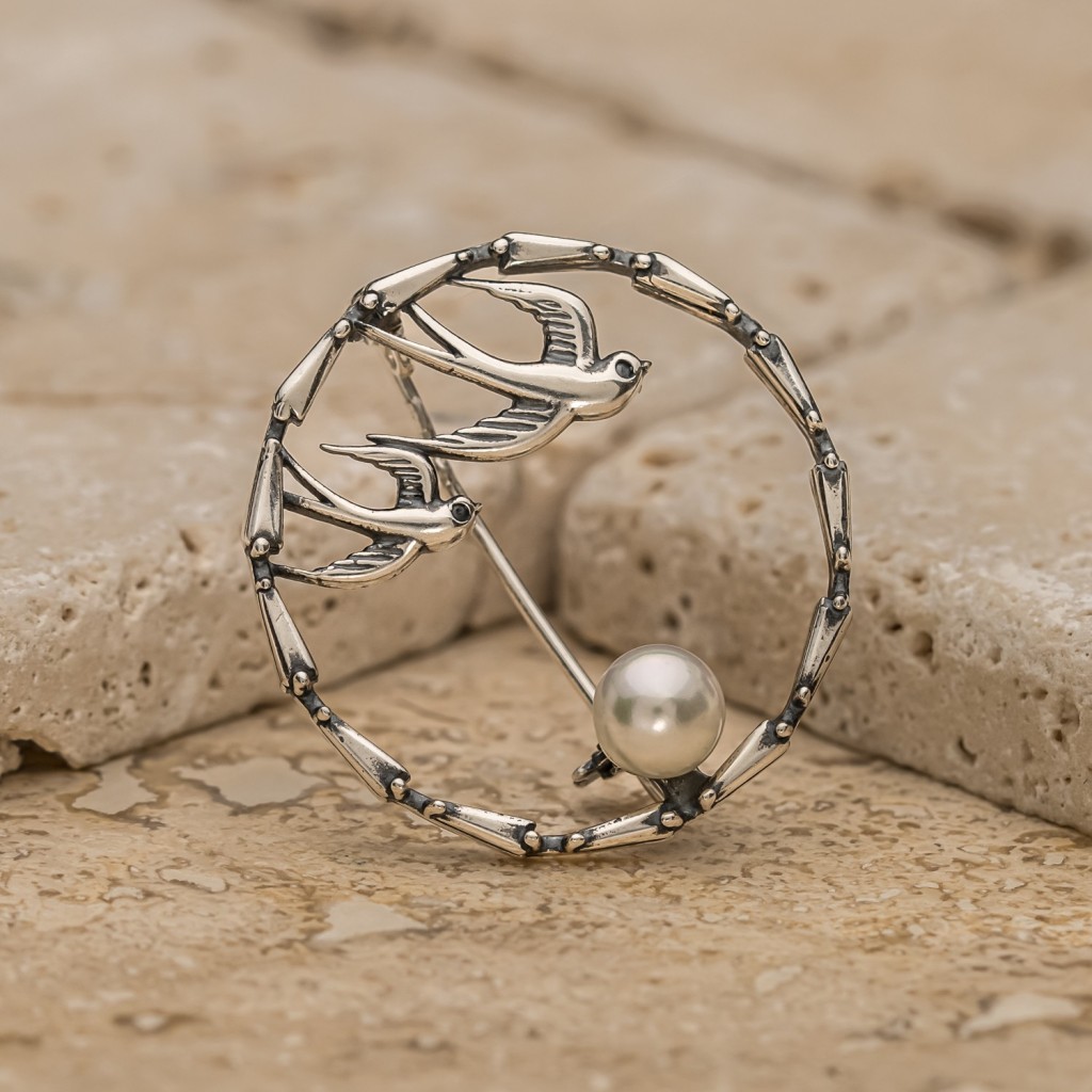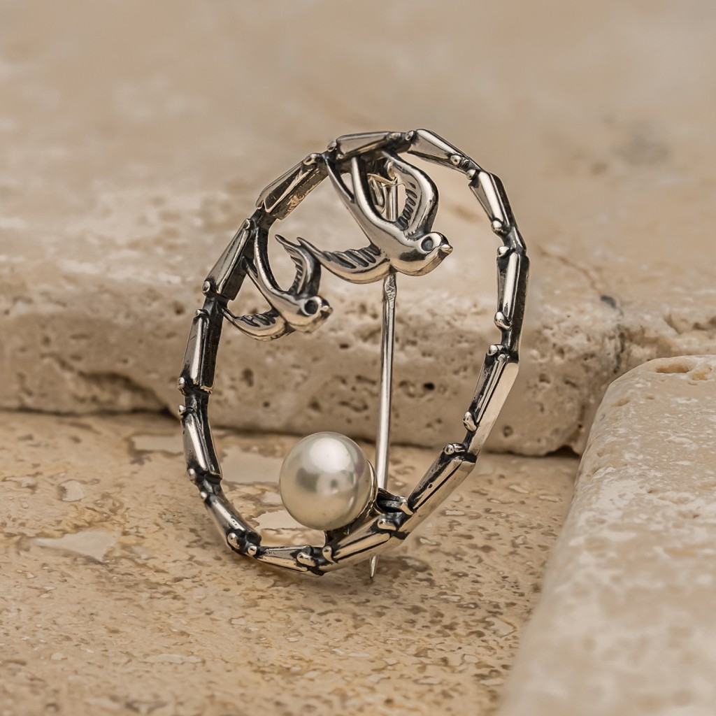 Sidabrinė sagė su perlais