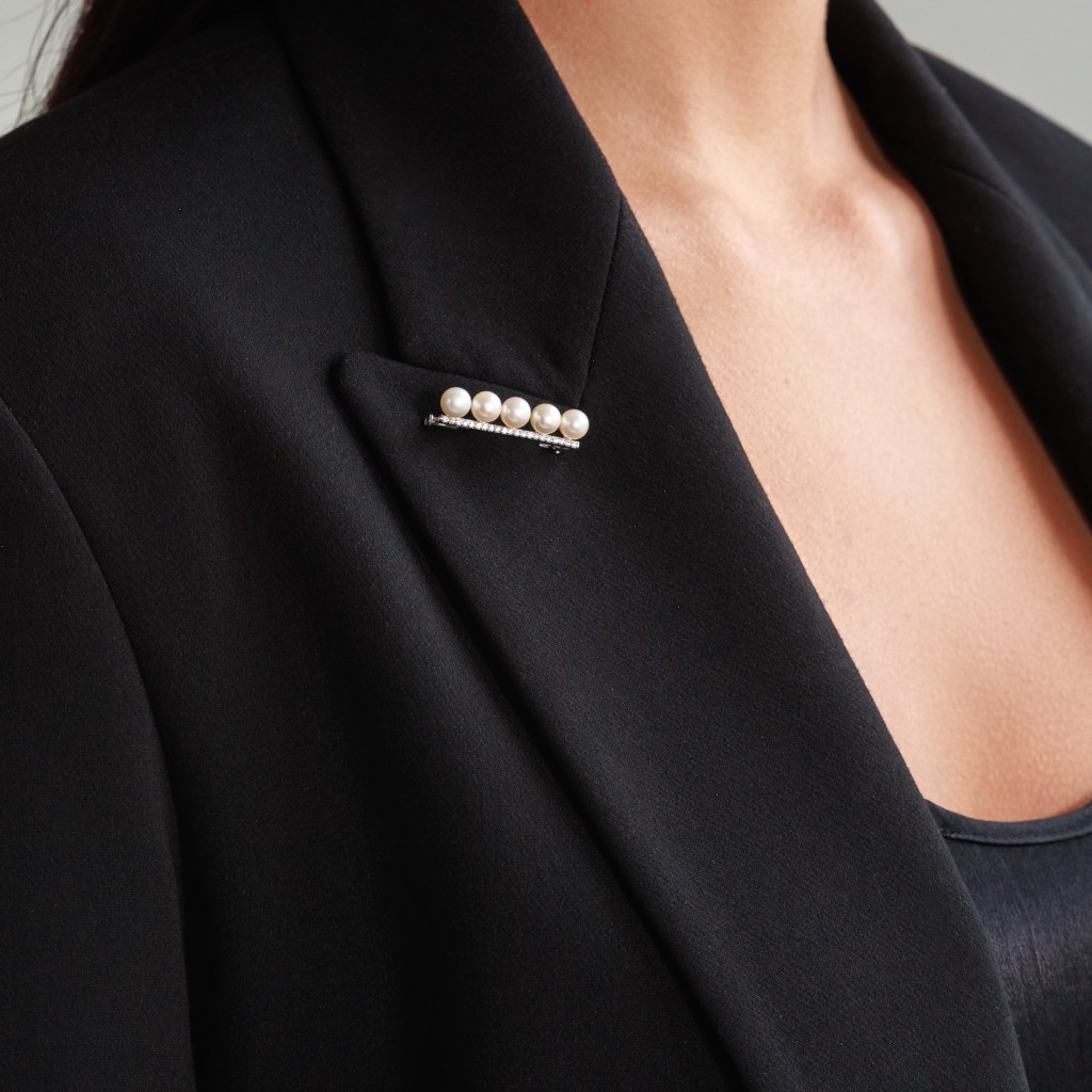 Sidabrinė sagė su perlais ir cirkoniais