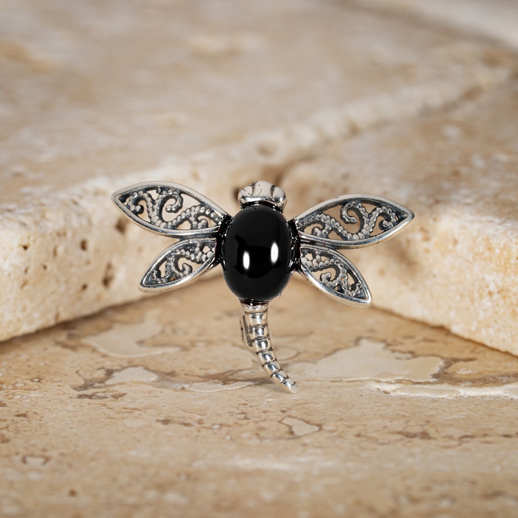 Sidabrinė sagė su oniksu "Laumžirgis"