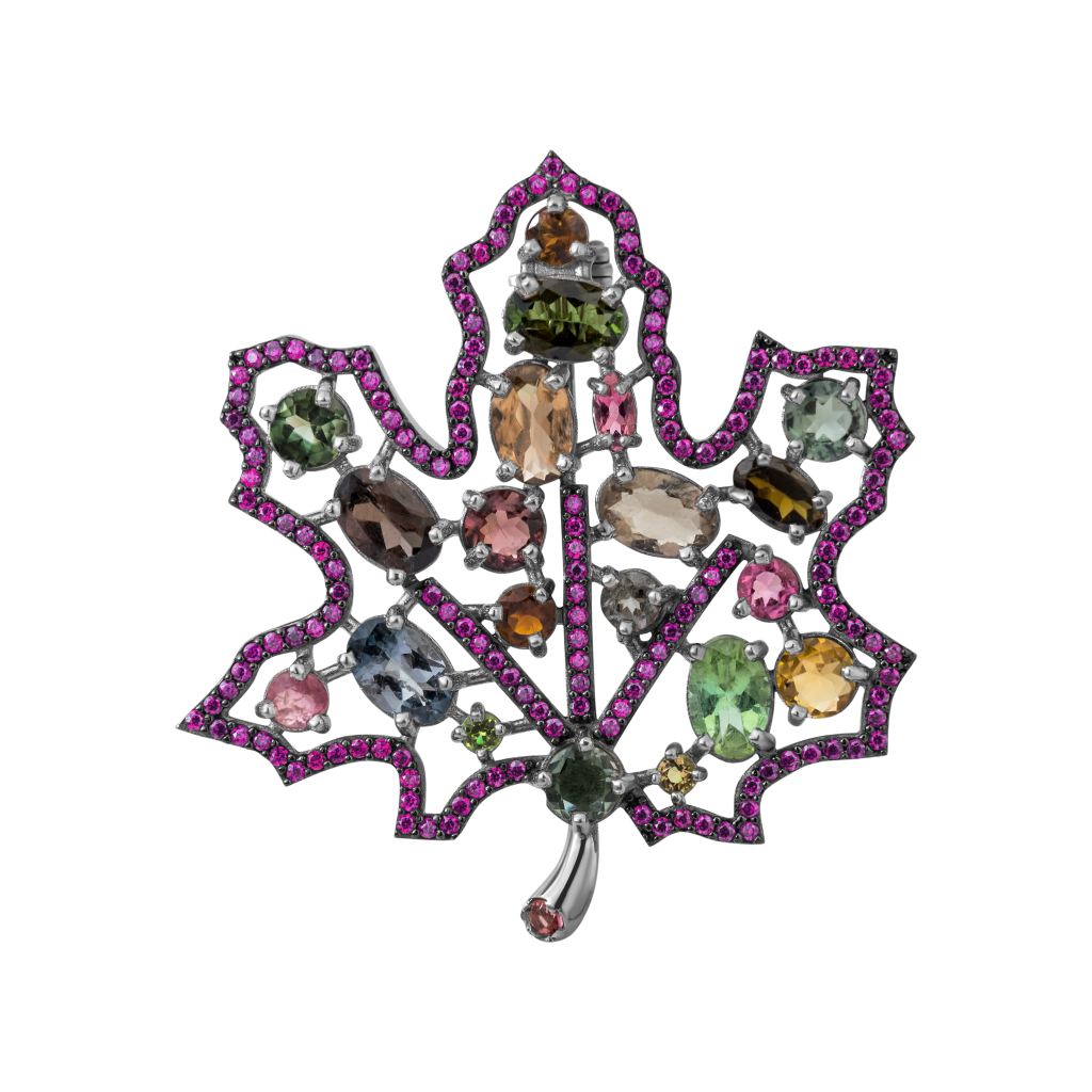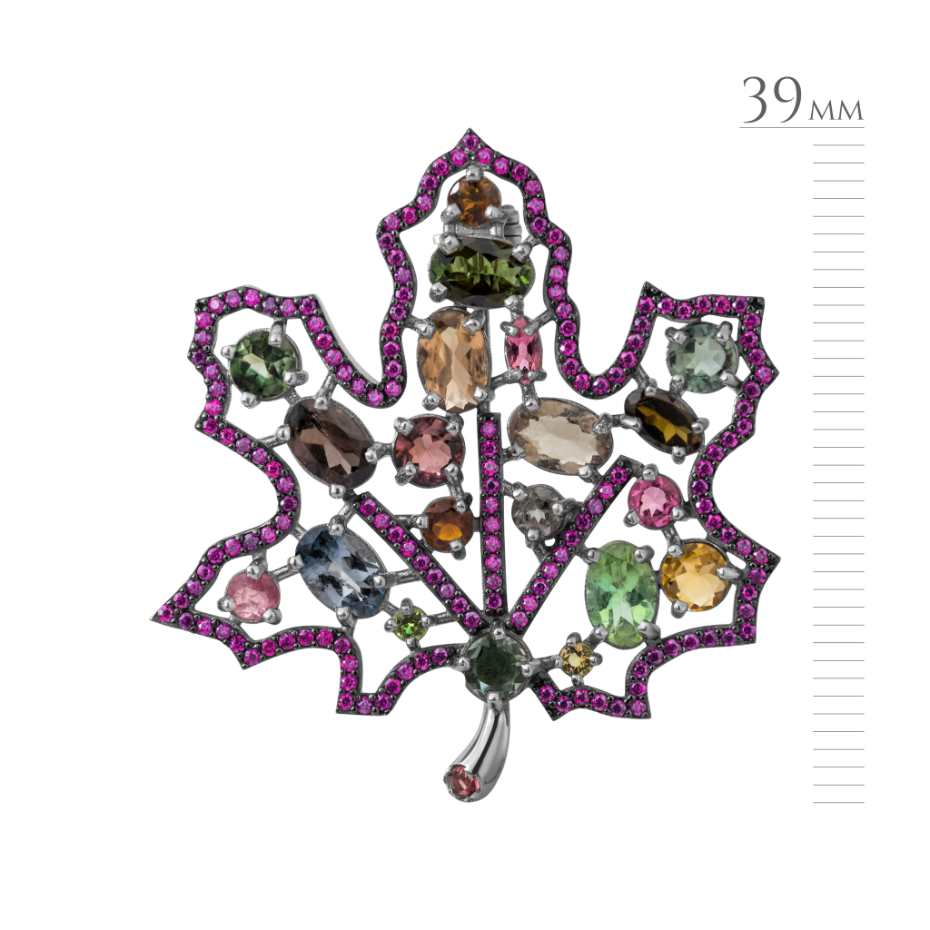 Sidabrinė sagė su cirkoniais ir turmalinu - Sagės - Goldinga