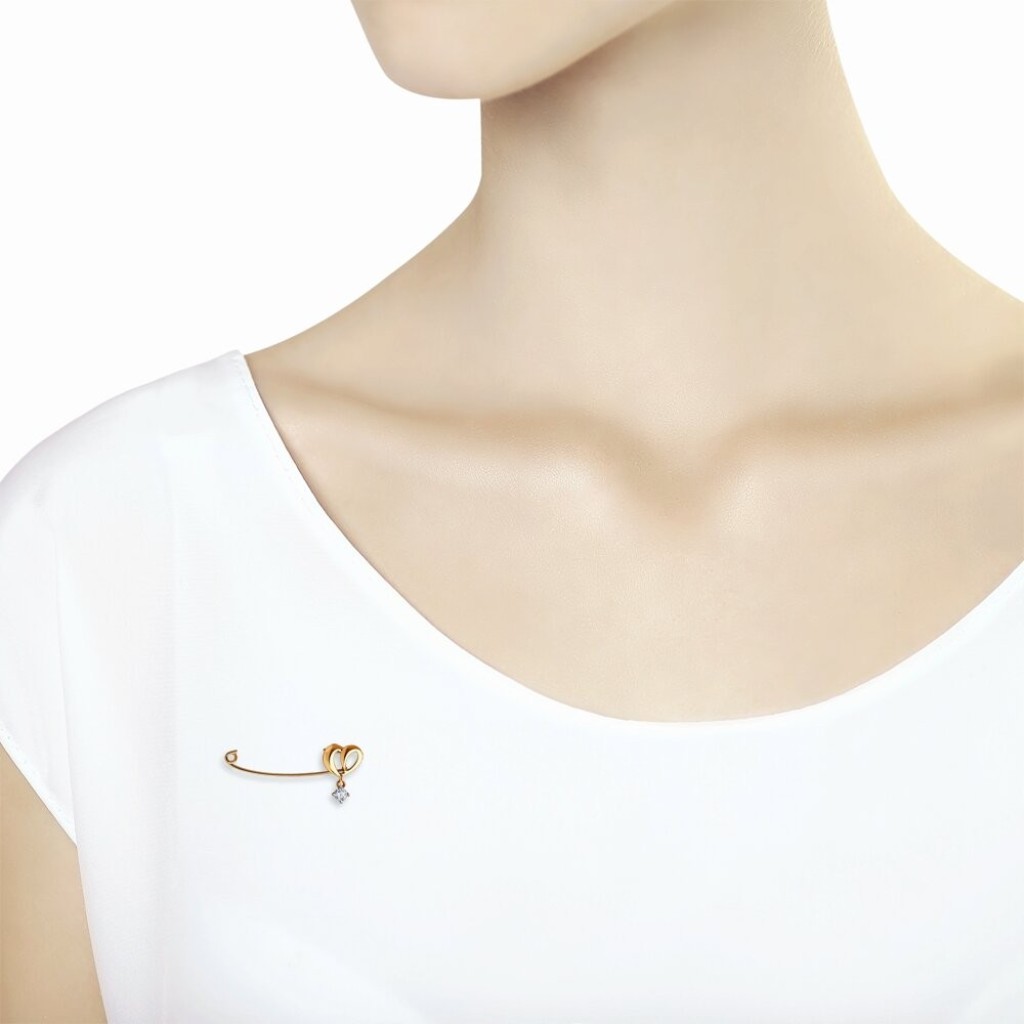 Auksinė sagė su cirkoniu "Širdelė" - Sagės - Goldinga