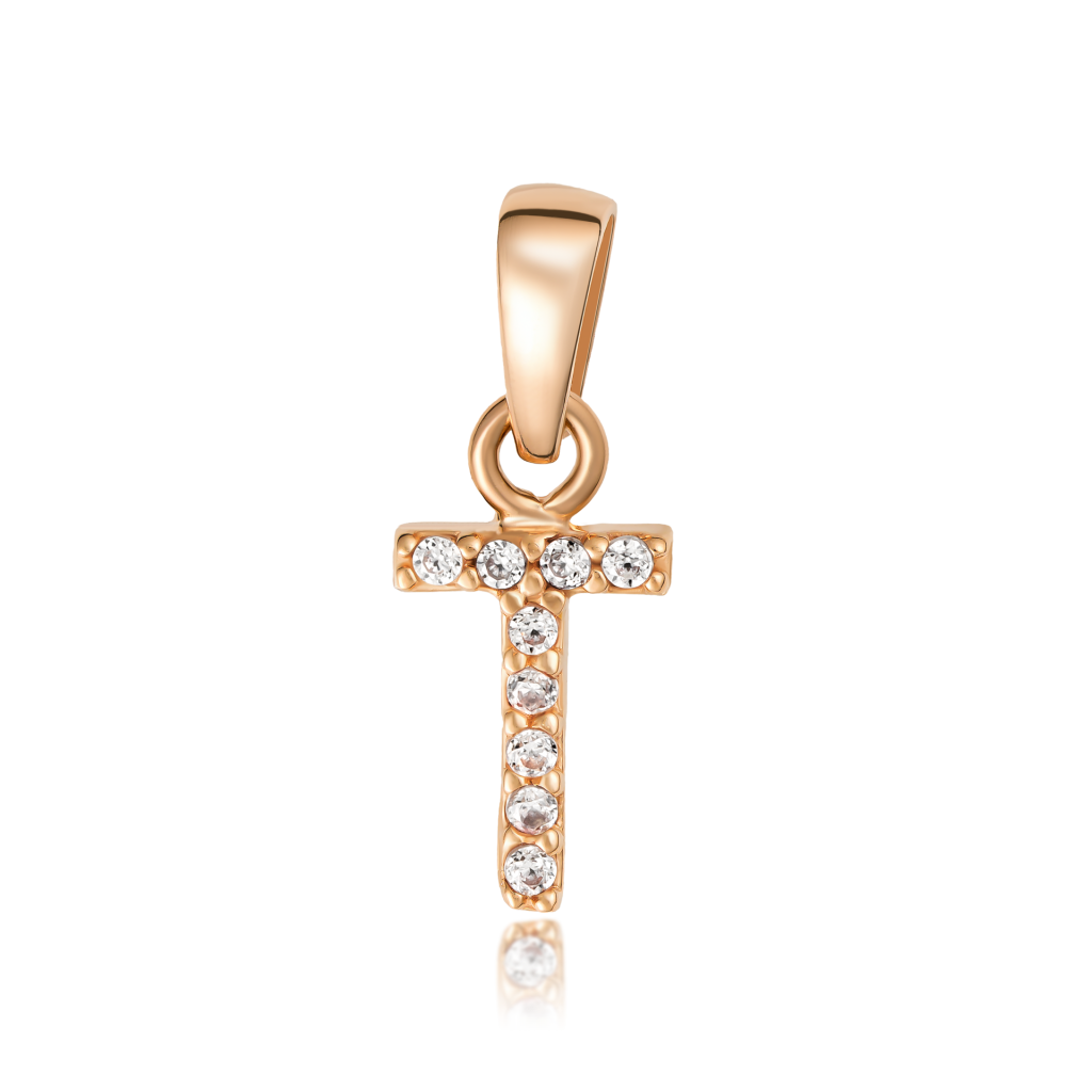 Auksinis pakabukas su cirkoniais raidė T - Auksiniai pakabukai - Goldinga