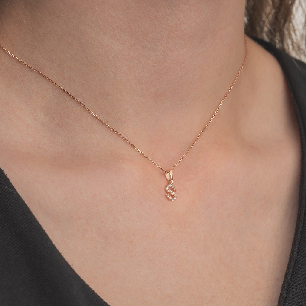 Auksinis pakabukas su cirkoniais raidė S - Auksiniai pakabukai - Goldinga