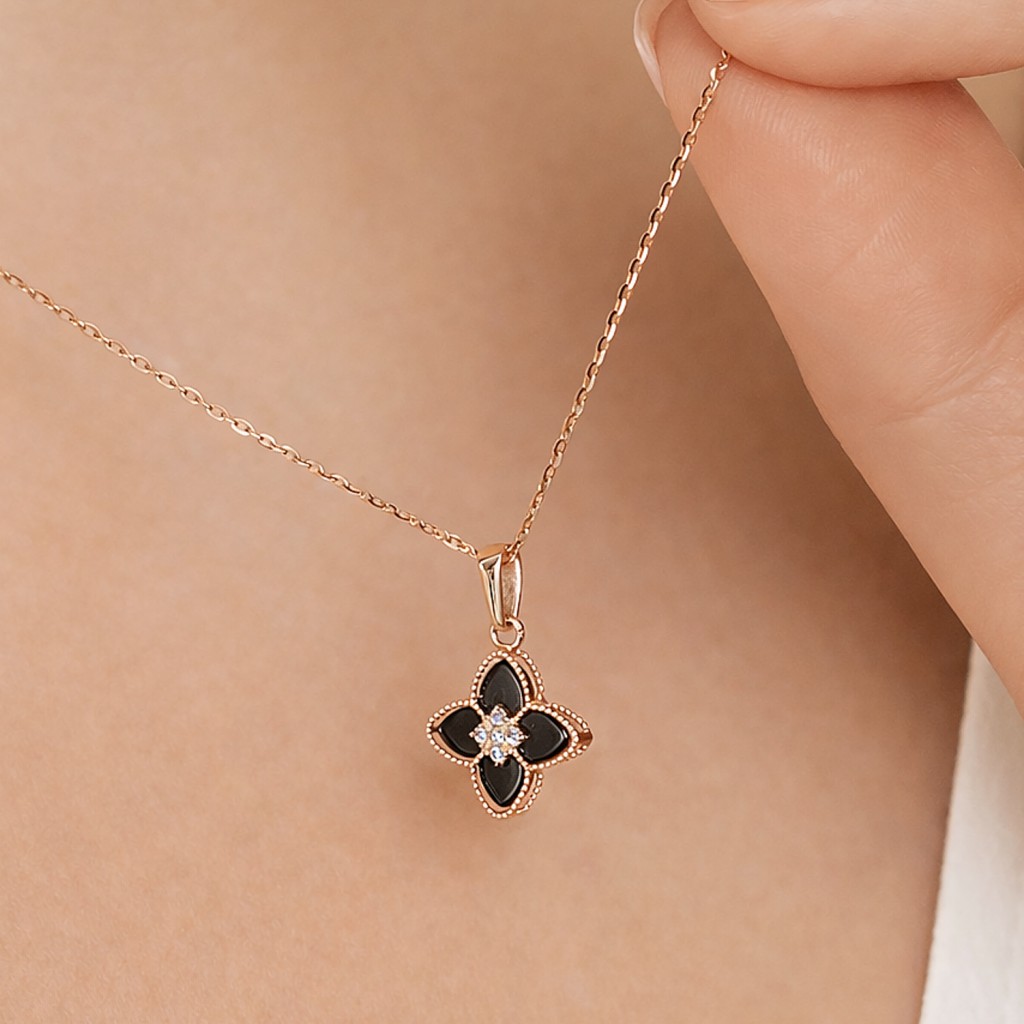 Auksinis pakabukas su oniksu ir cirkoniais