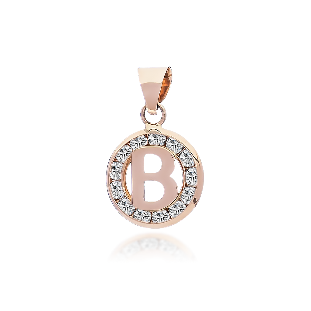 Auksinis pakabukas su cirkoniais raidė B - Auksiniai pakabukai - Goldinga