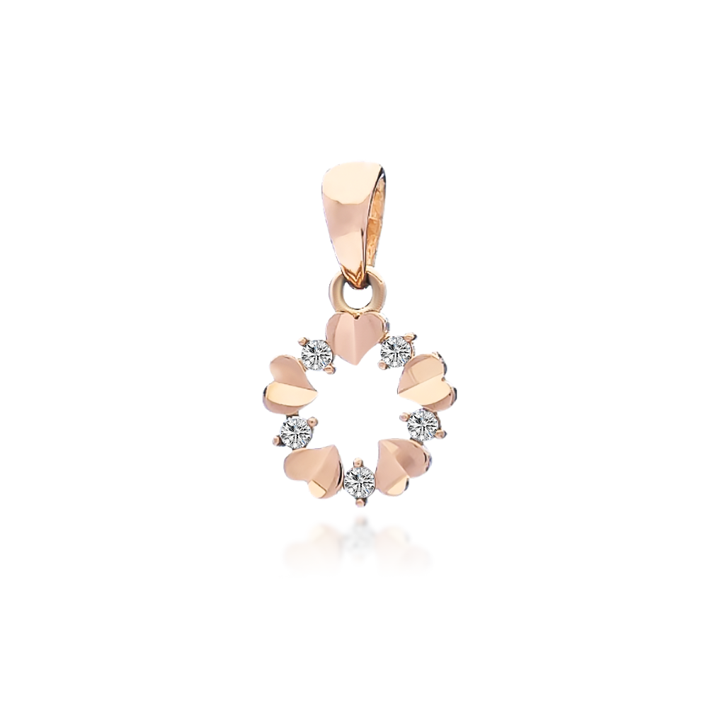 Auksinis pakabukas su cirkoniais "Širdelių vainikas"