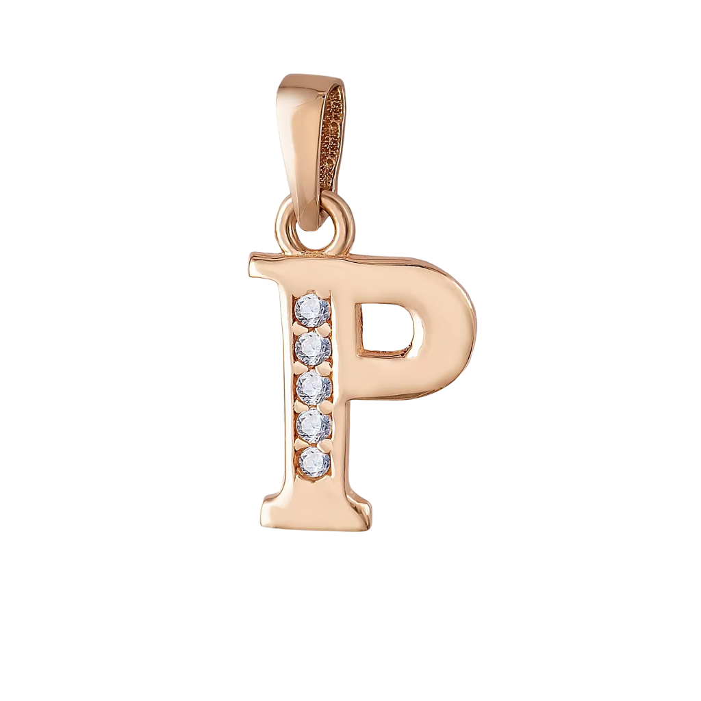 Auksinis pakabukas su cirkoniais raidė P - Auksiniai pakabukai - Goldinga