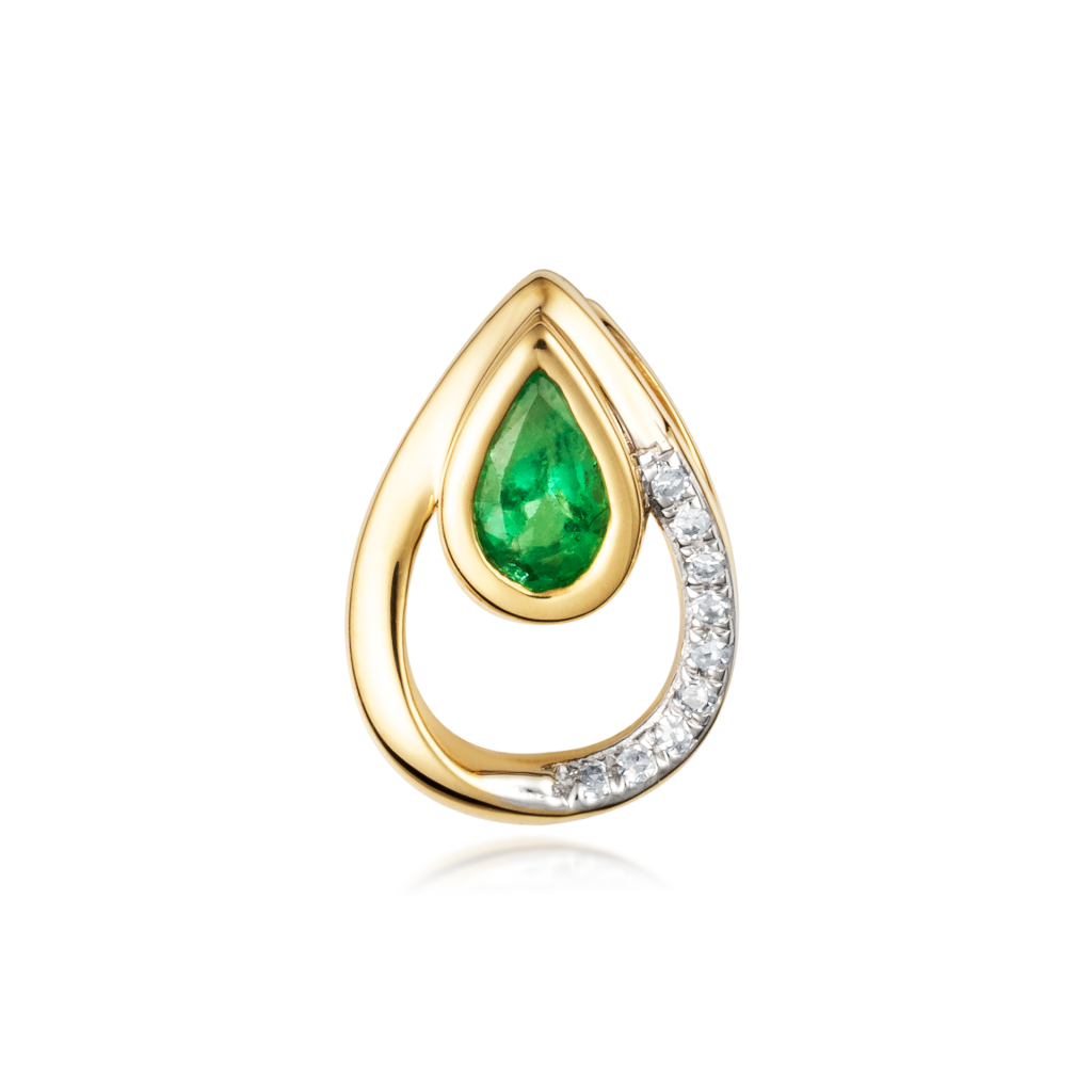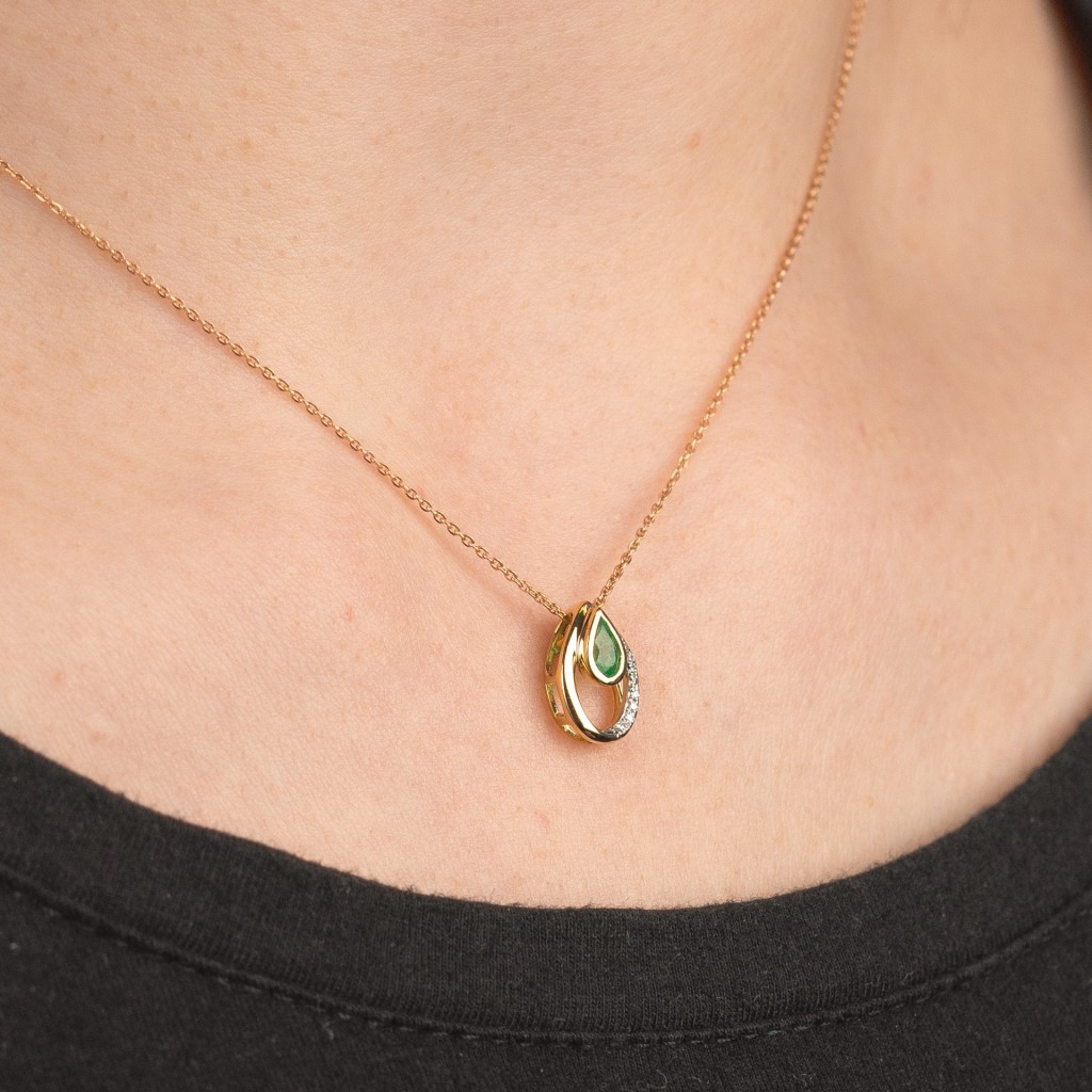 Geltono aukso pakabukas su smaragdu ir deimantais - Pakabukai su brangakmeniais - Goldinga