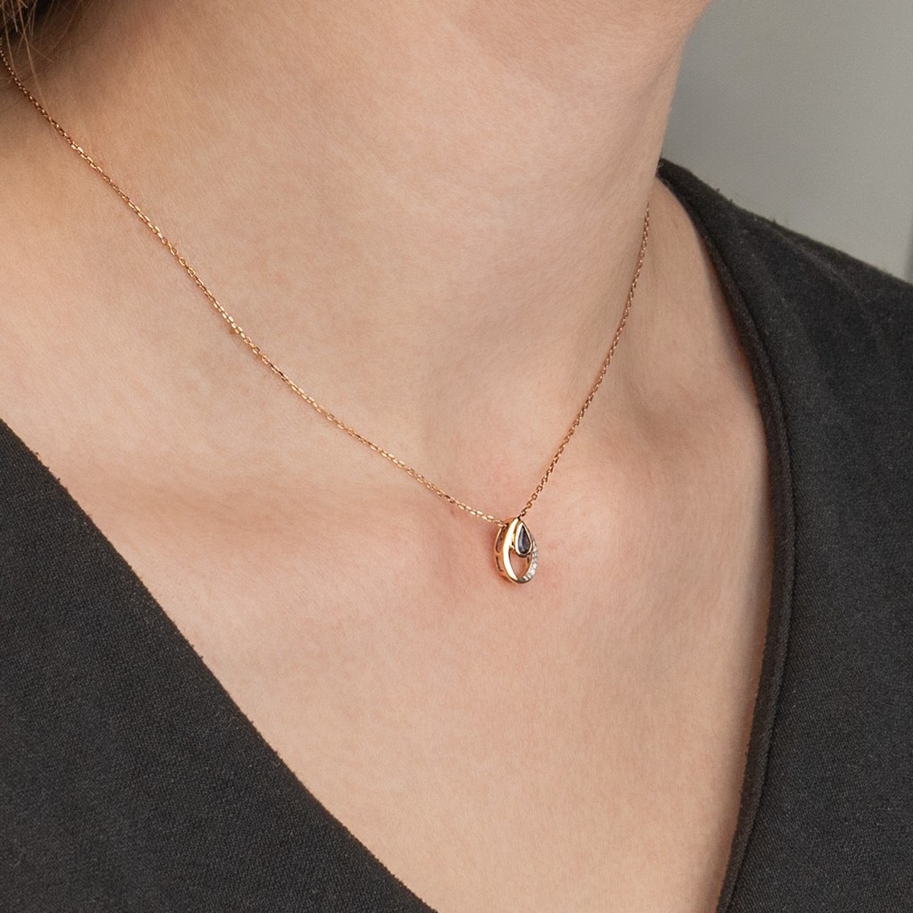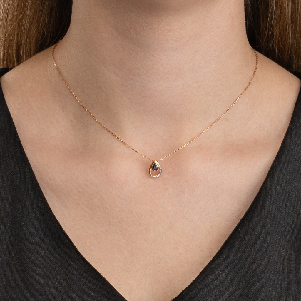 Auksinis pakabukas su safyru ir deimantais - Pakabukai su brangakmeniais - Goldinga
