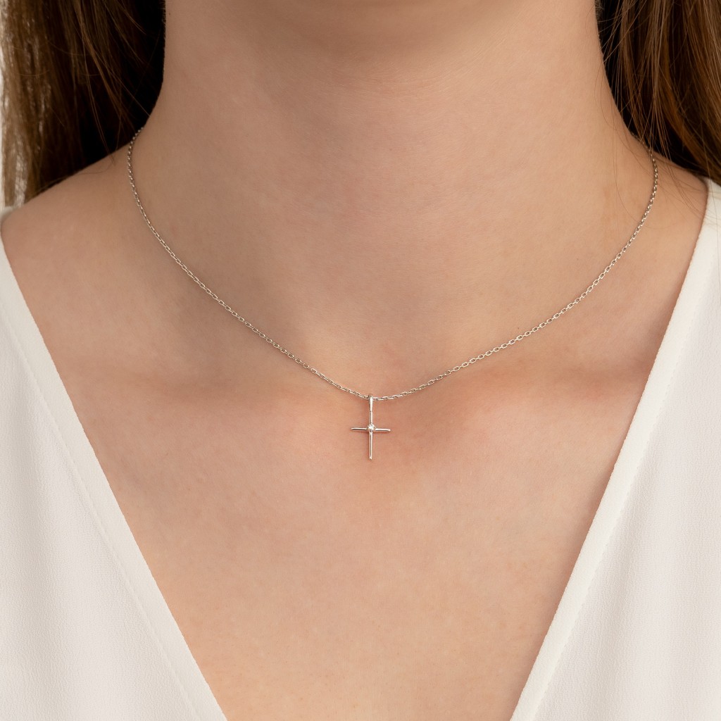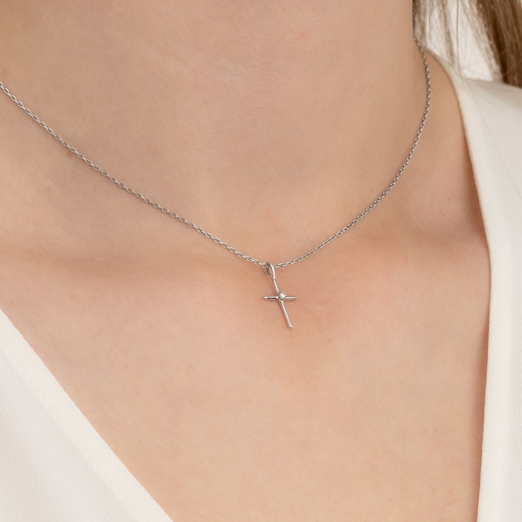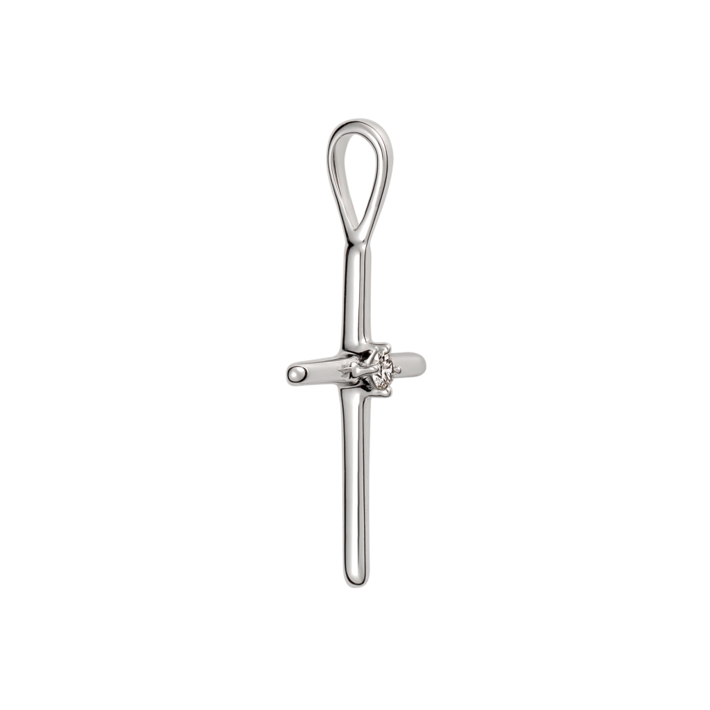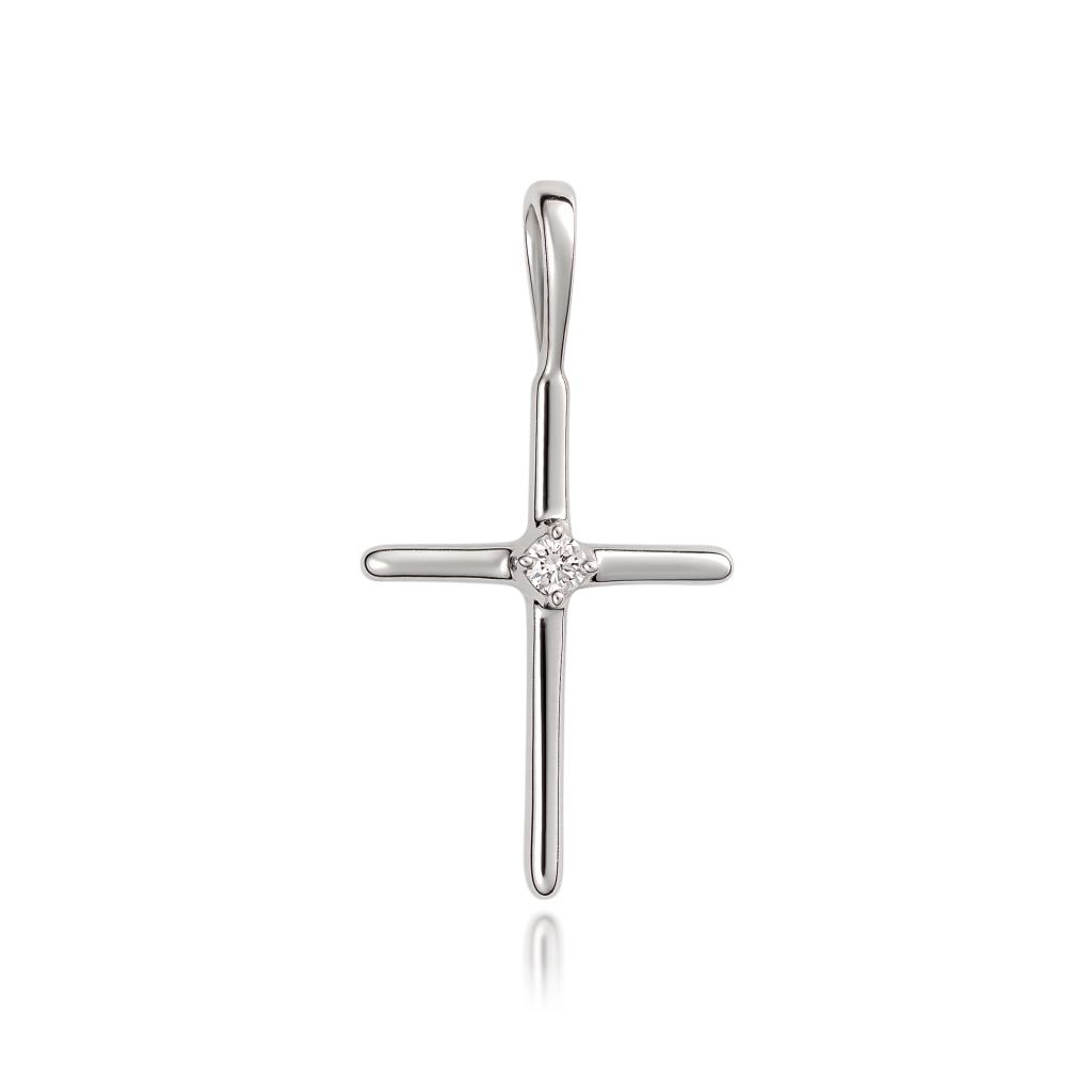 Balto aukso pakabukas su deimantais "Kryželis"