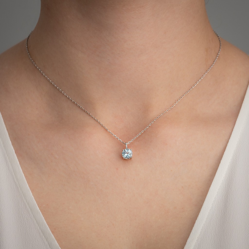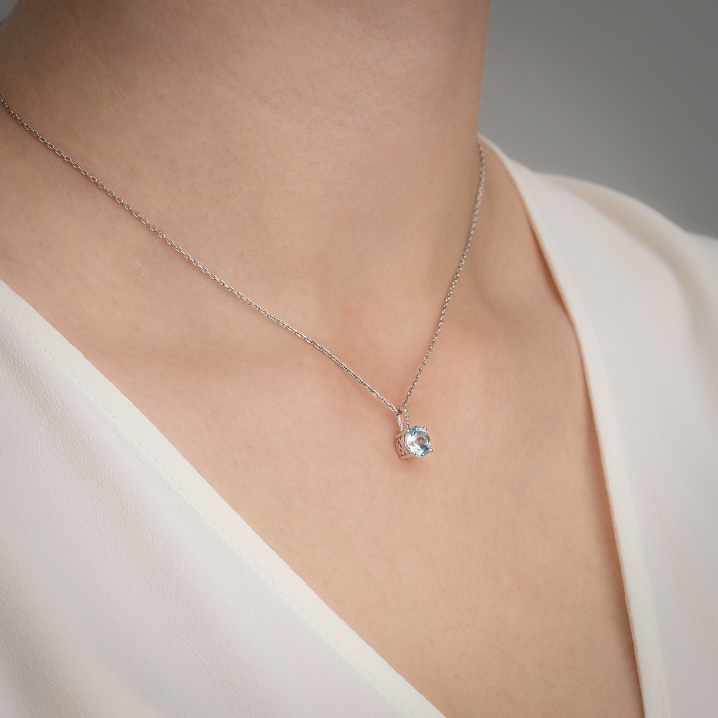Balto aukso pakabukas su deimantais ir topazu