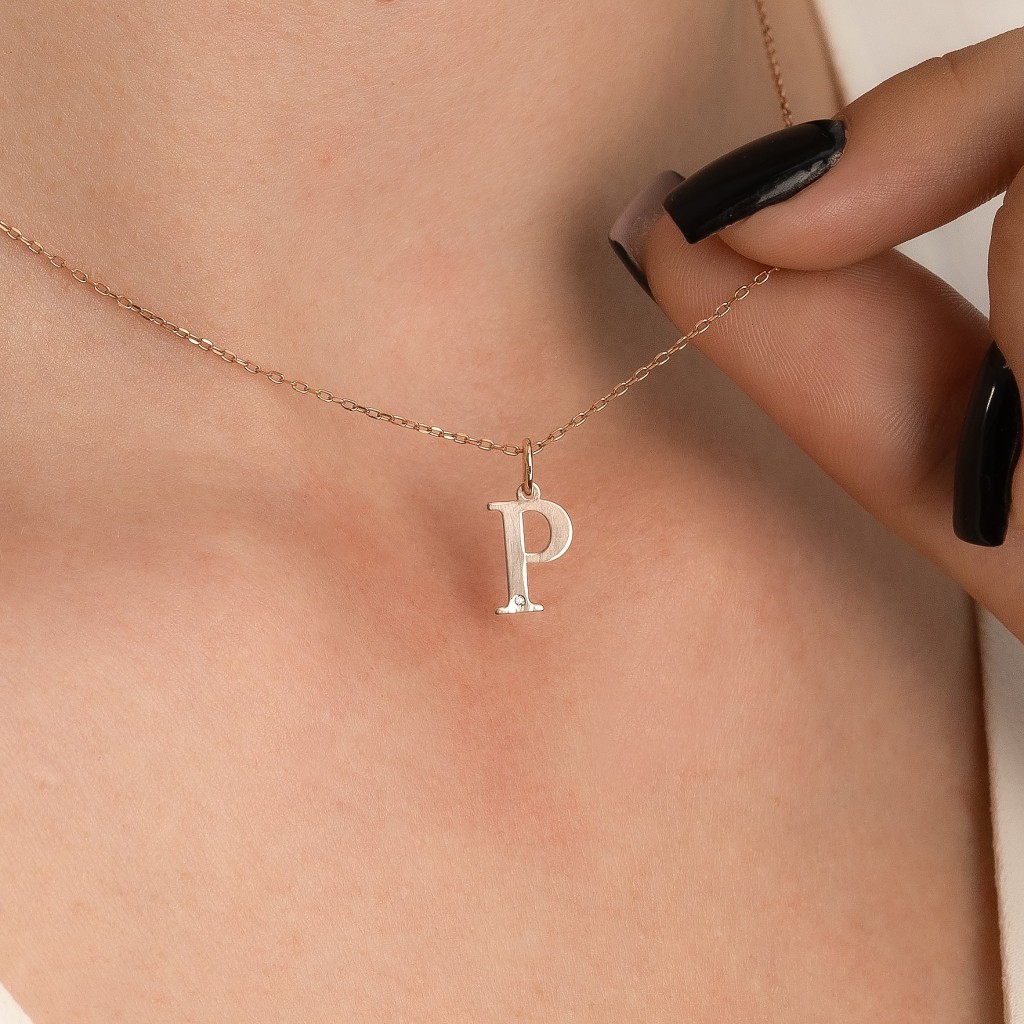 Auksinis pakabukas su deimantu raidė P - Pakabukai su brangakmeniais - Goldinga