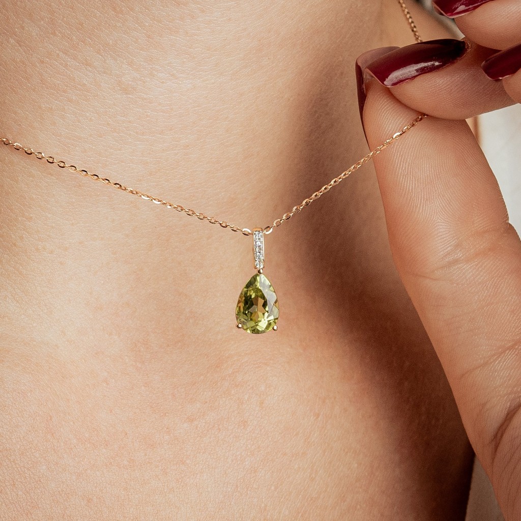 5 DEIMANTAI 0.014ct W, SI, 1 PERIDOTAS 2.205ct VS