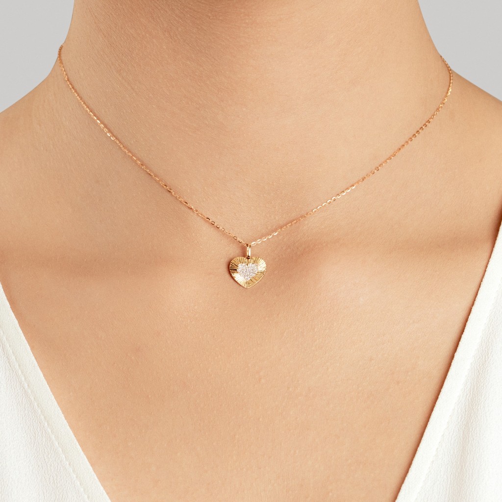 Geltono aukso pakabukas su deimantais "Širdelė"