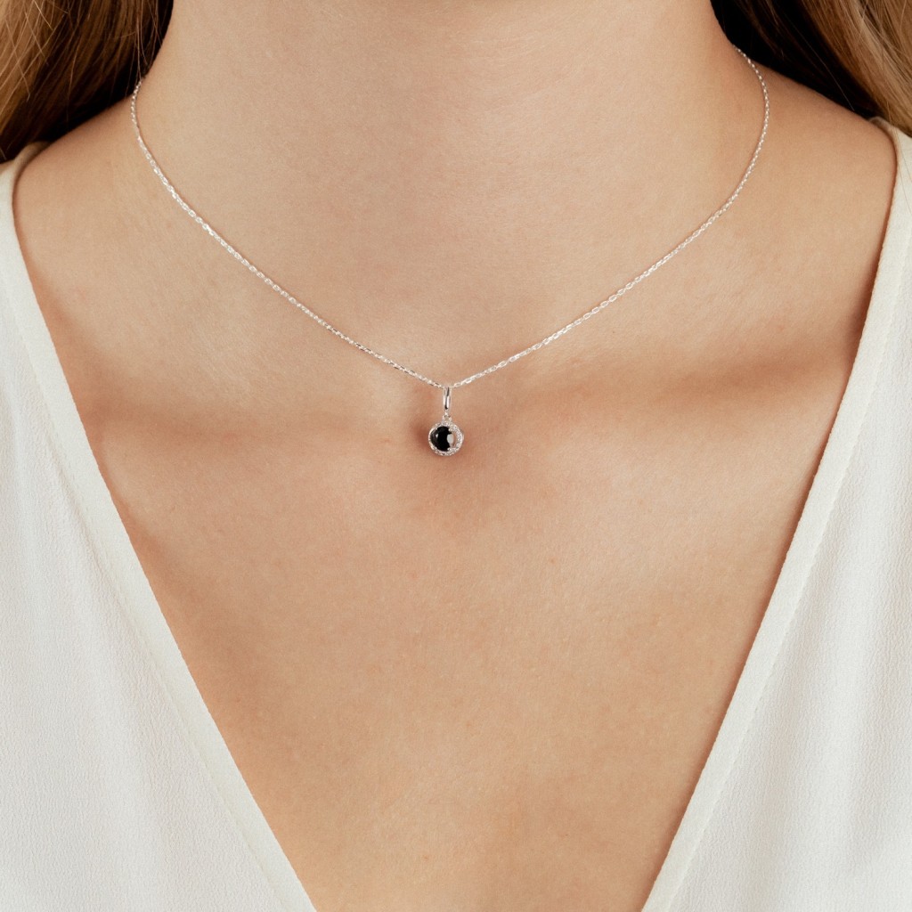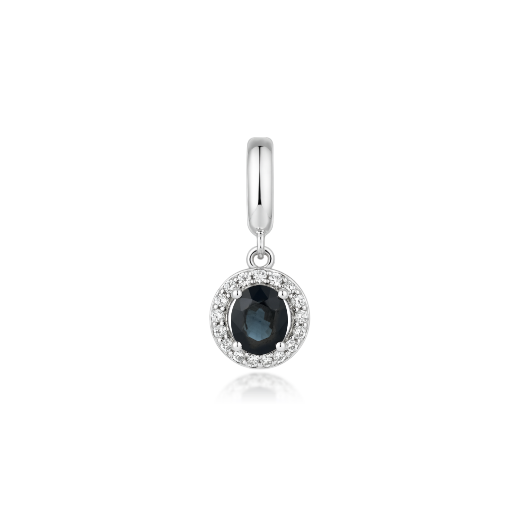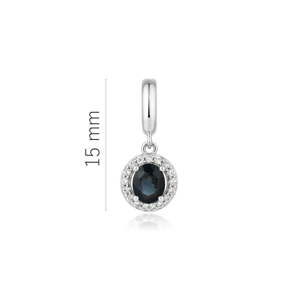 Balto aukso pakabukas su safyru ir deimantais