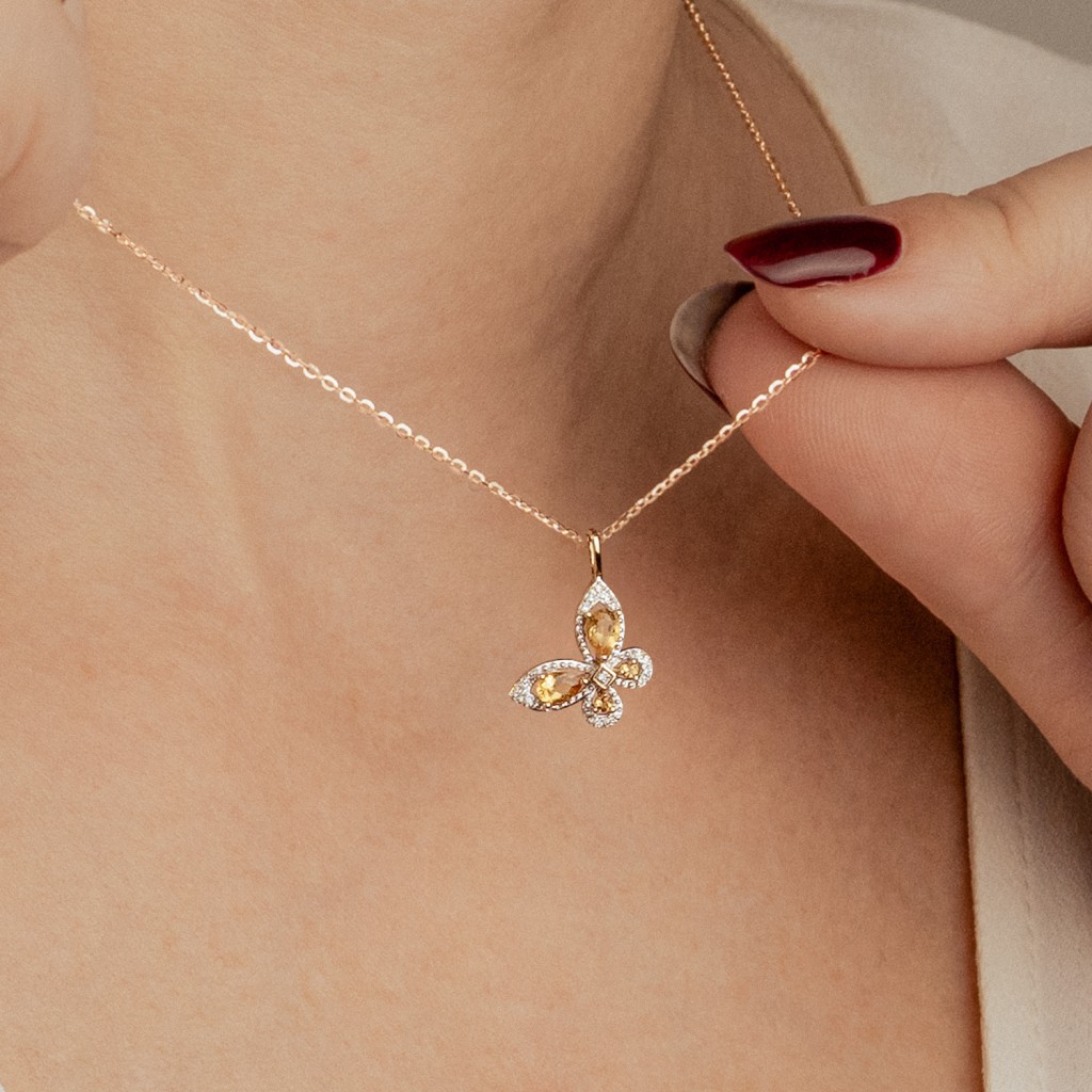 Geltono aukso pakabukas su deimantais ir citrinais
