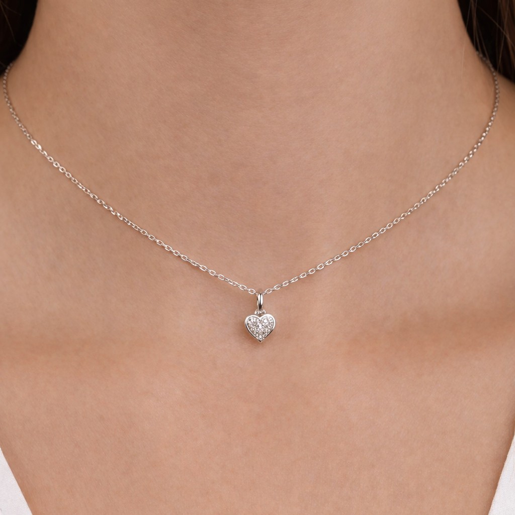 Balto ausko pakabukas su deimantais "Širdelė"