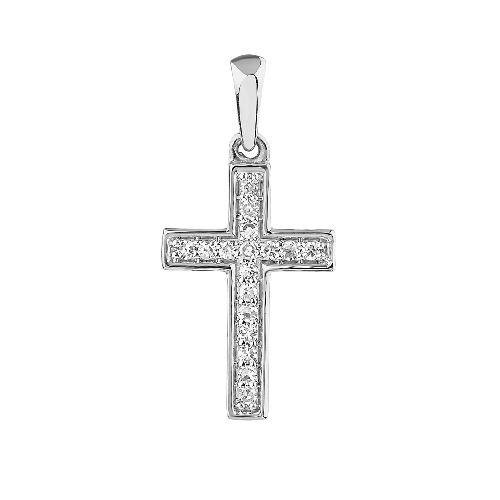 Balto aukso pakabukas su deimantais "Kryželis" - Pakabukai su brangakmeniais - Goldinga