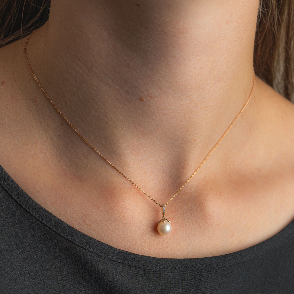 Auksinis pakabukas su deimantais ir perlu - Pakabukai su brangakmeniais - Goldinga