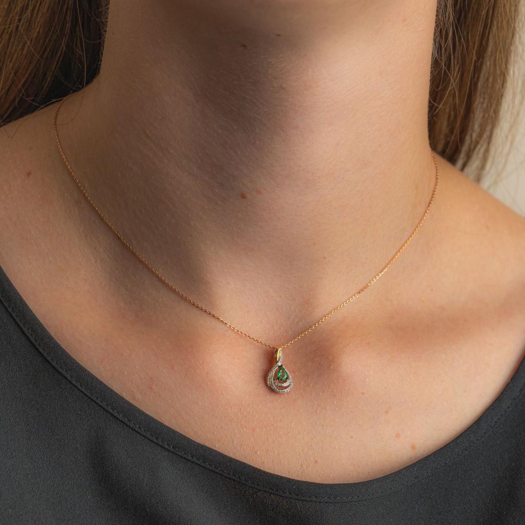 Auksinis pakabukas su deimantais ir smaragdu - Pakabukai su brangakmeniais - Goldinga